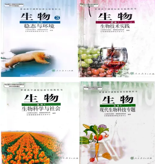 五.2004年版《普通高中课程标准实验教科书·生物·(必修)分子与细胞-1、遗传与进化-2、稳态与环境-3、》和《普通高中课程标准实验教科书·生物·(选修)生物技术实践-1、生物科学与社会-2、现代生物科技专题-3》