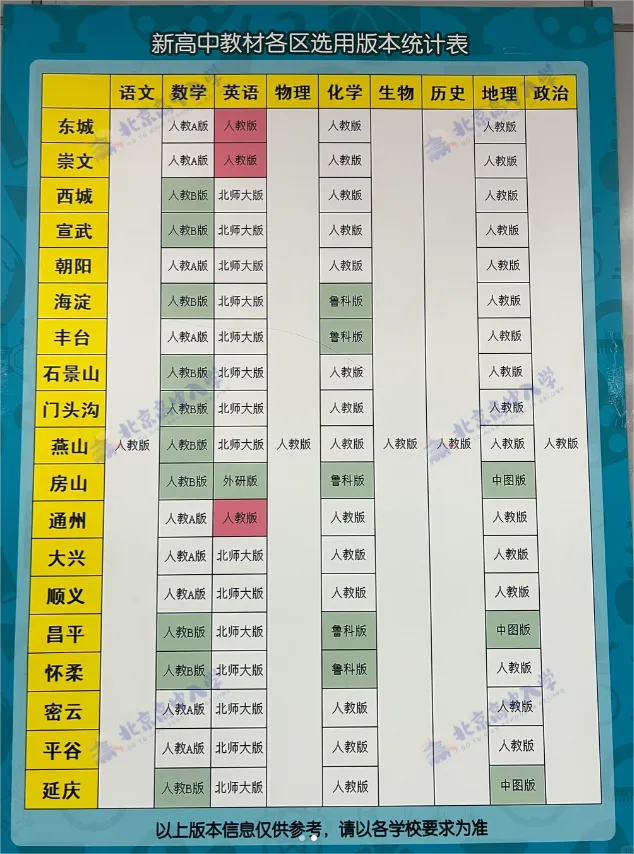 2026年北京高中各学科都使用哪个版本教材?北京高中入学收集了相关信息,低年级提前关注!