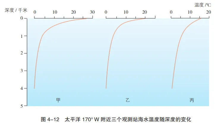 3.三个观测站的表层水温差别较大,但是深度1000米以下的深层海水,水温随深度的变化不大,经常保持着低温状态。想一想,这是为什么?