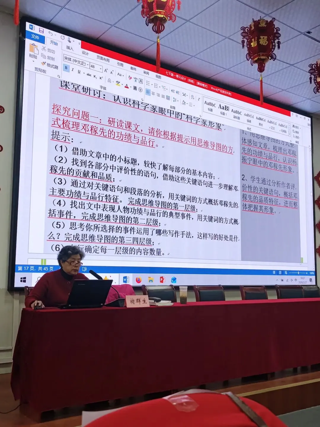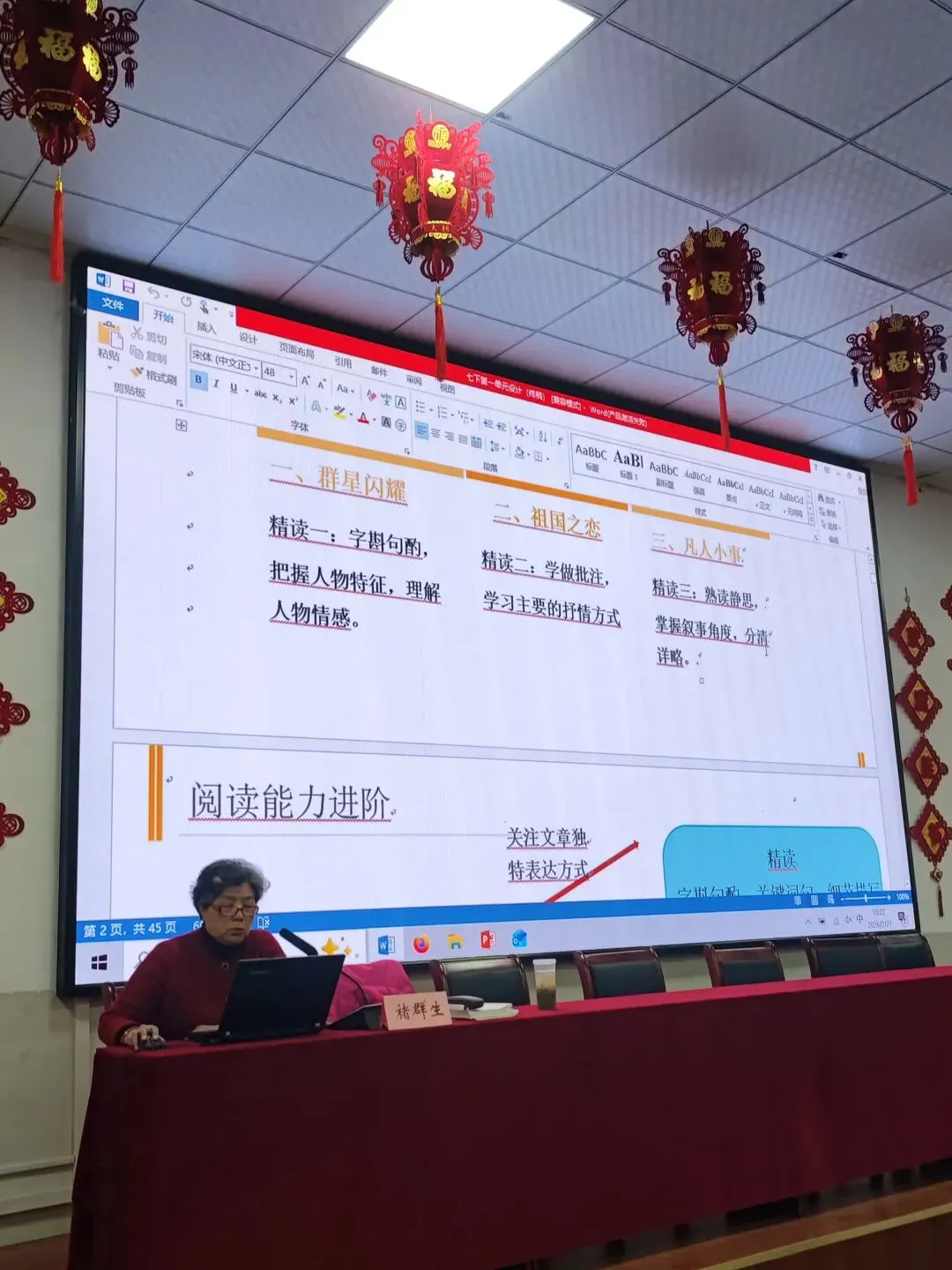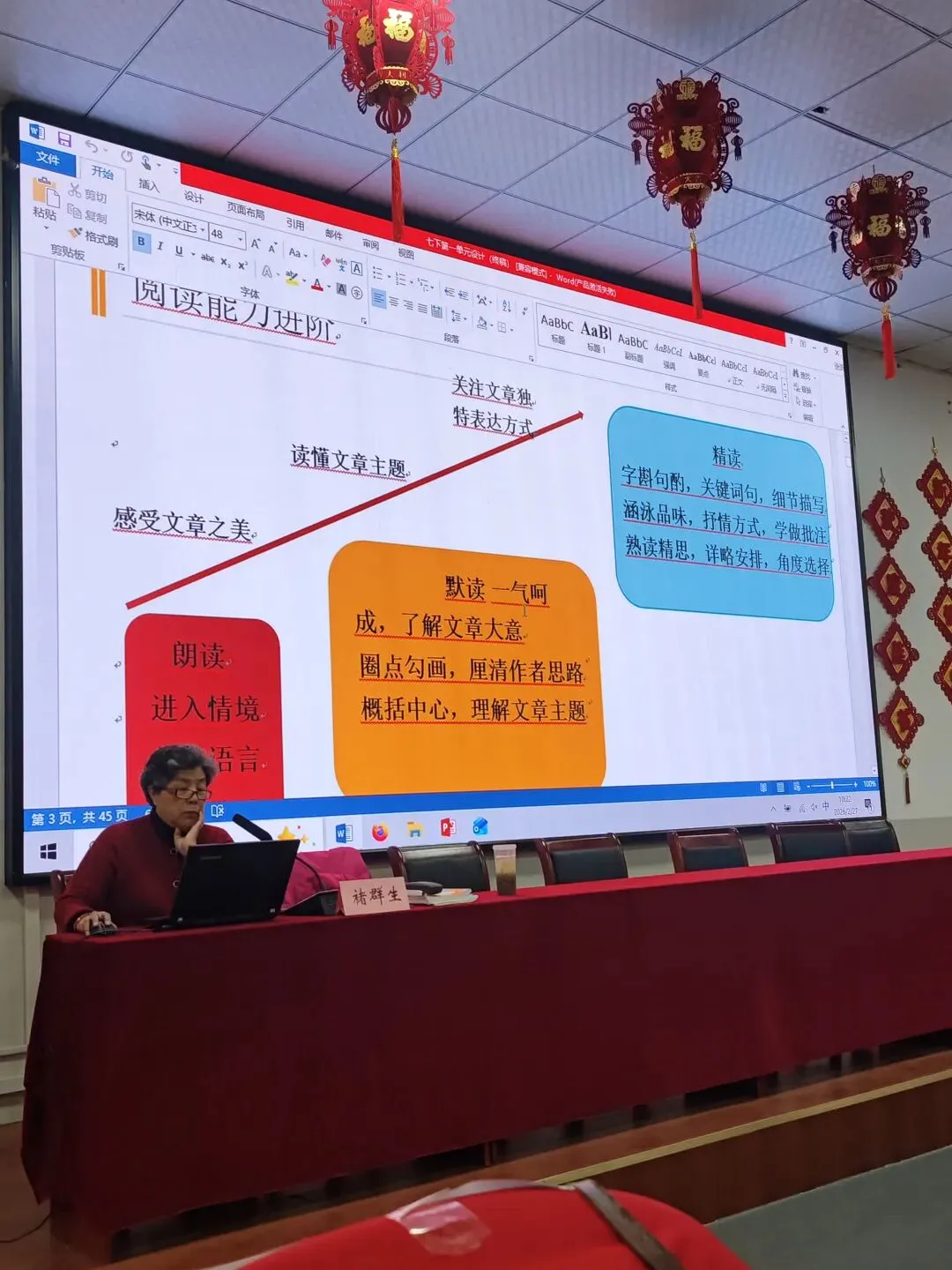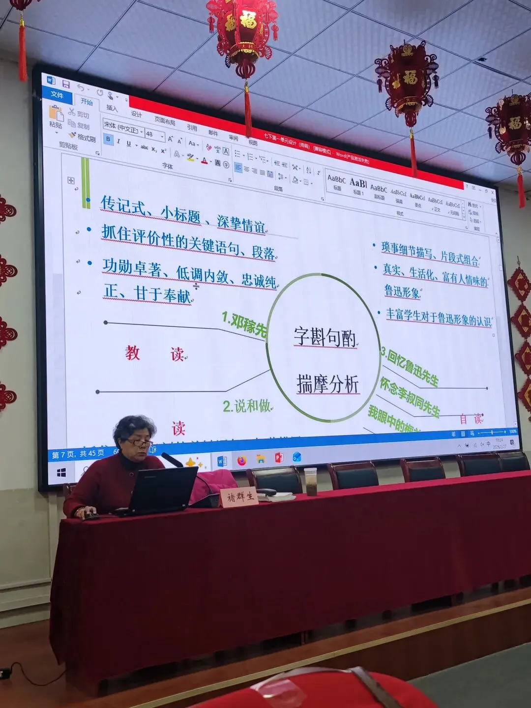 全班汇报。行不行?敢不敢这个试一把?我觉得你就可以试,然后你说你设计那些那学生就是不太明白,就是大成本啊,前面呢有铺垫,这这这不是上来就做这么一个大活,第一堂课先梳理,先梳理,是不是啊?先梳理处理完了啊,然后你就进入理解了吗?理解环节也这样觉得啊,如果我们学生程度比较好,我们就设立这一大问题。那就引导给别人若干提示,阅读提示,你得给我发阅读提示,然后学生来顺着这个区域前边藤野先生方方面面,是吧?方方面面的表现啊。