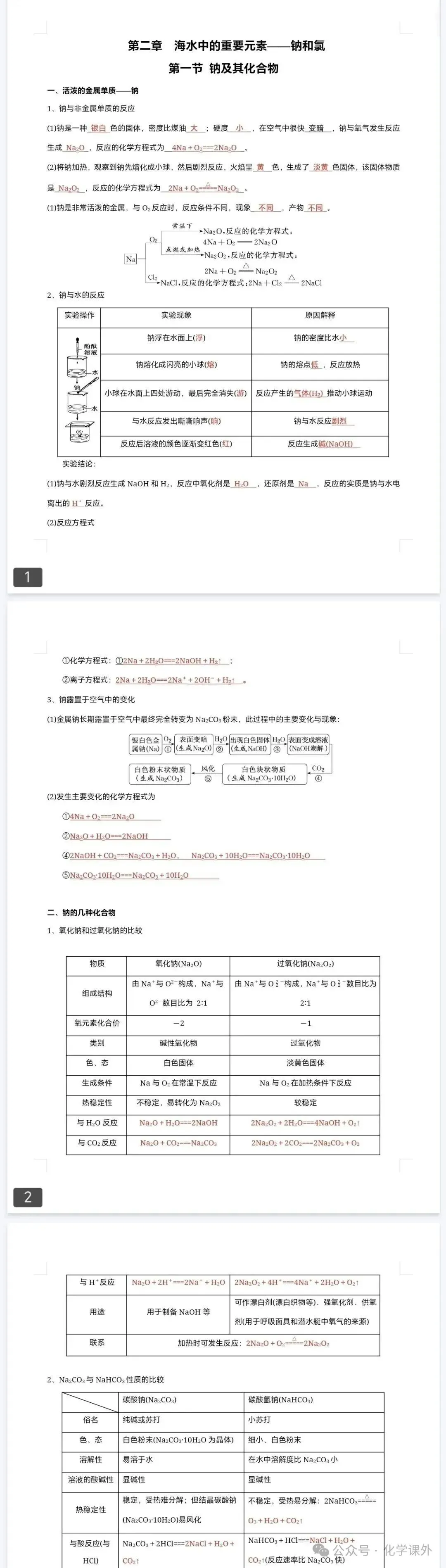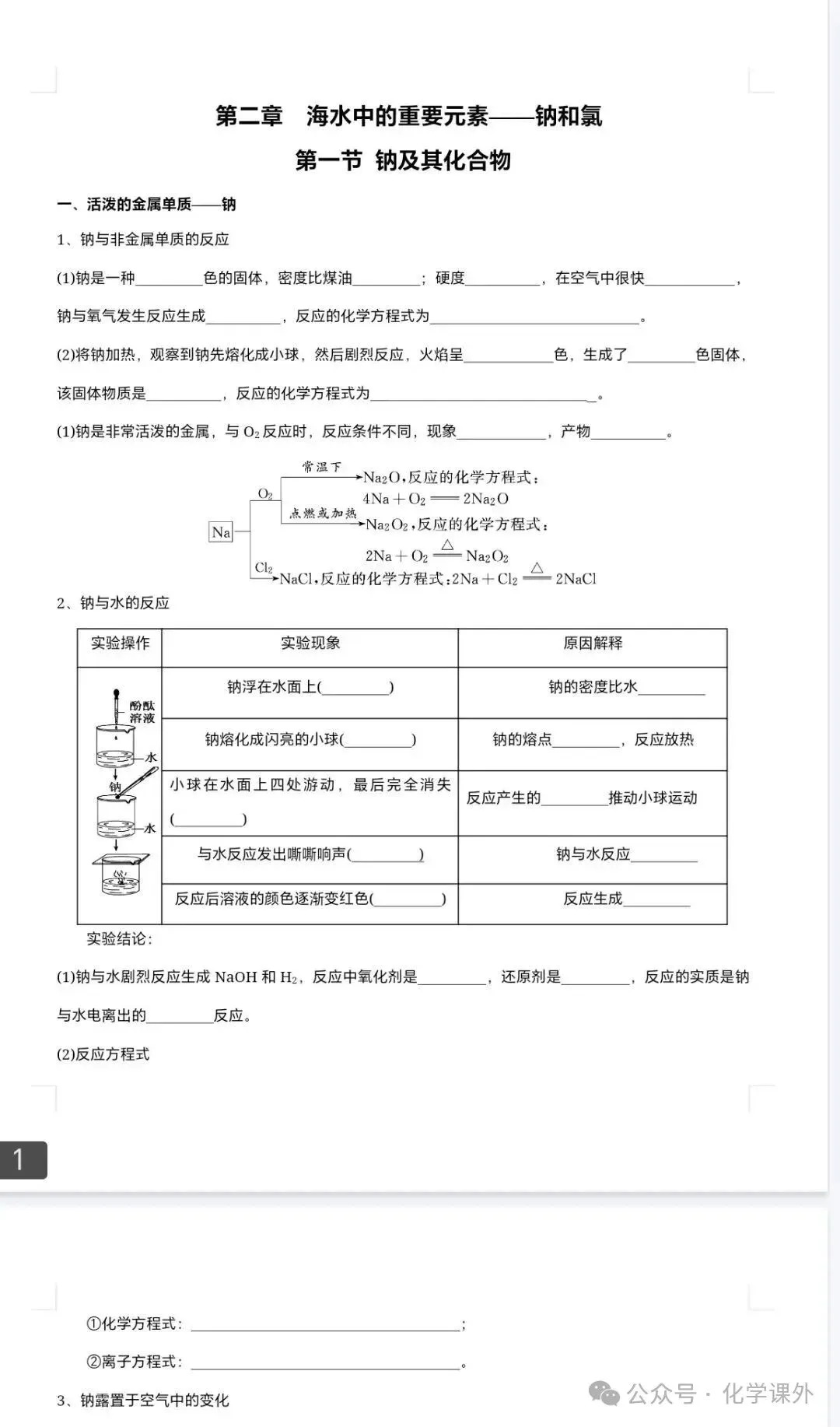 新高中化学新教材五本书知识清单 重排版(填空版+答案版+WORD版)下载