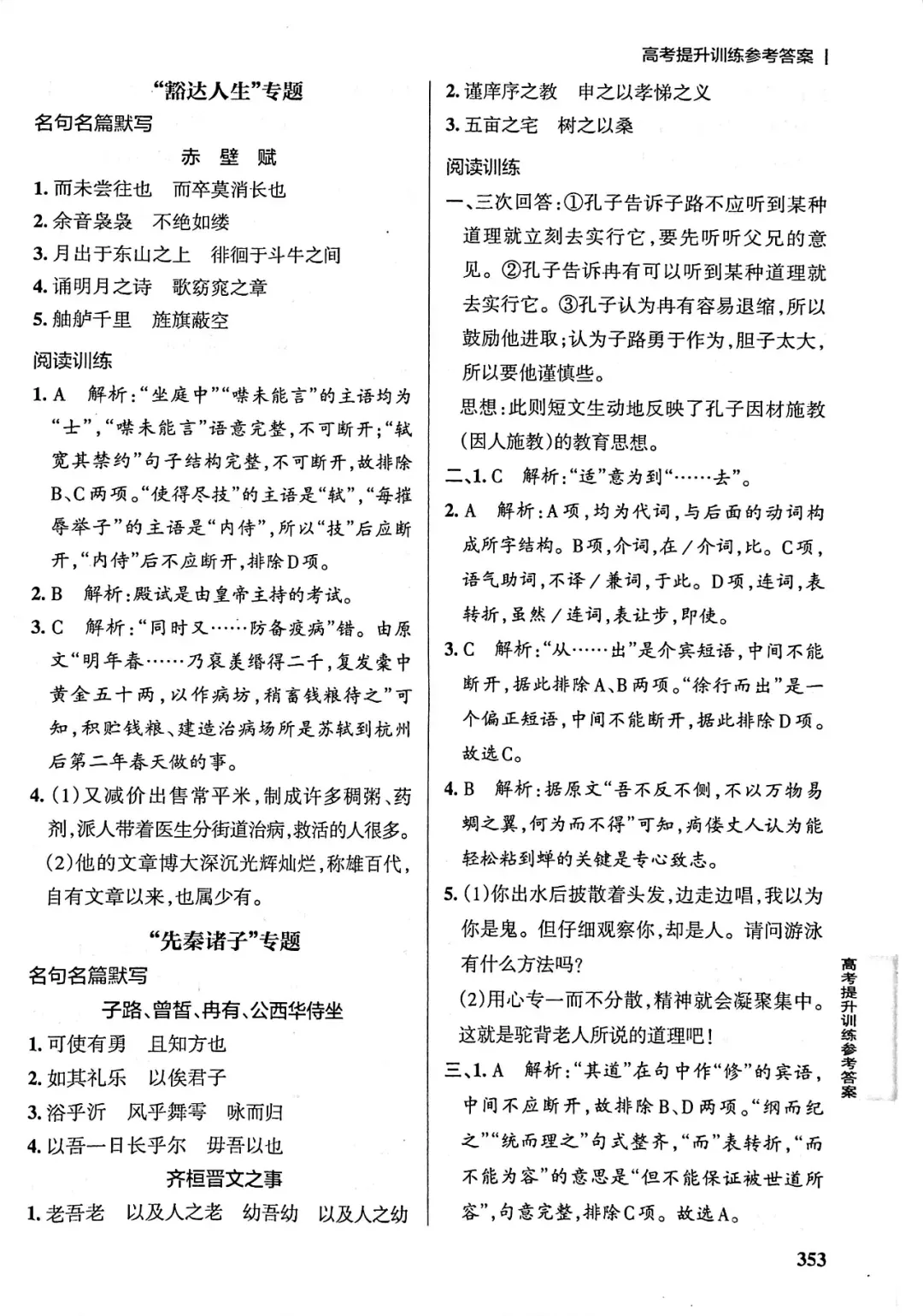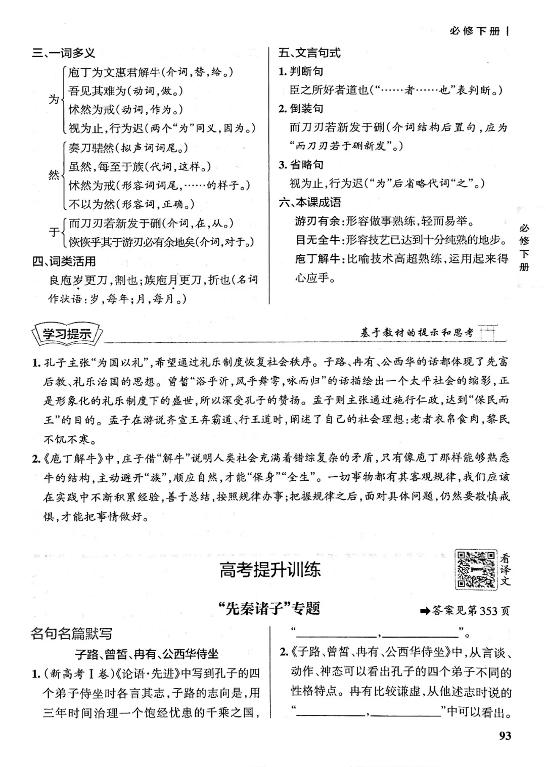 >高中课本同步解读《庖丁解牛》高考提升训练