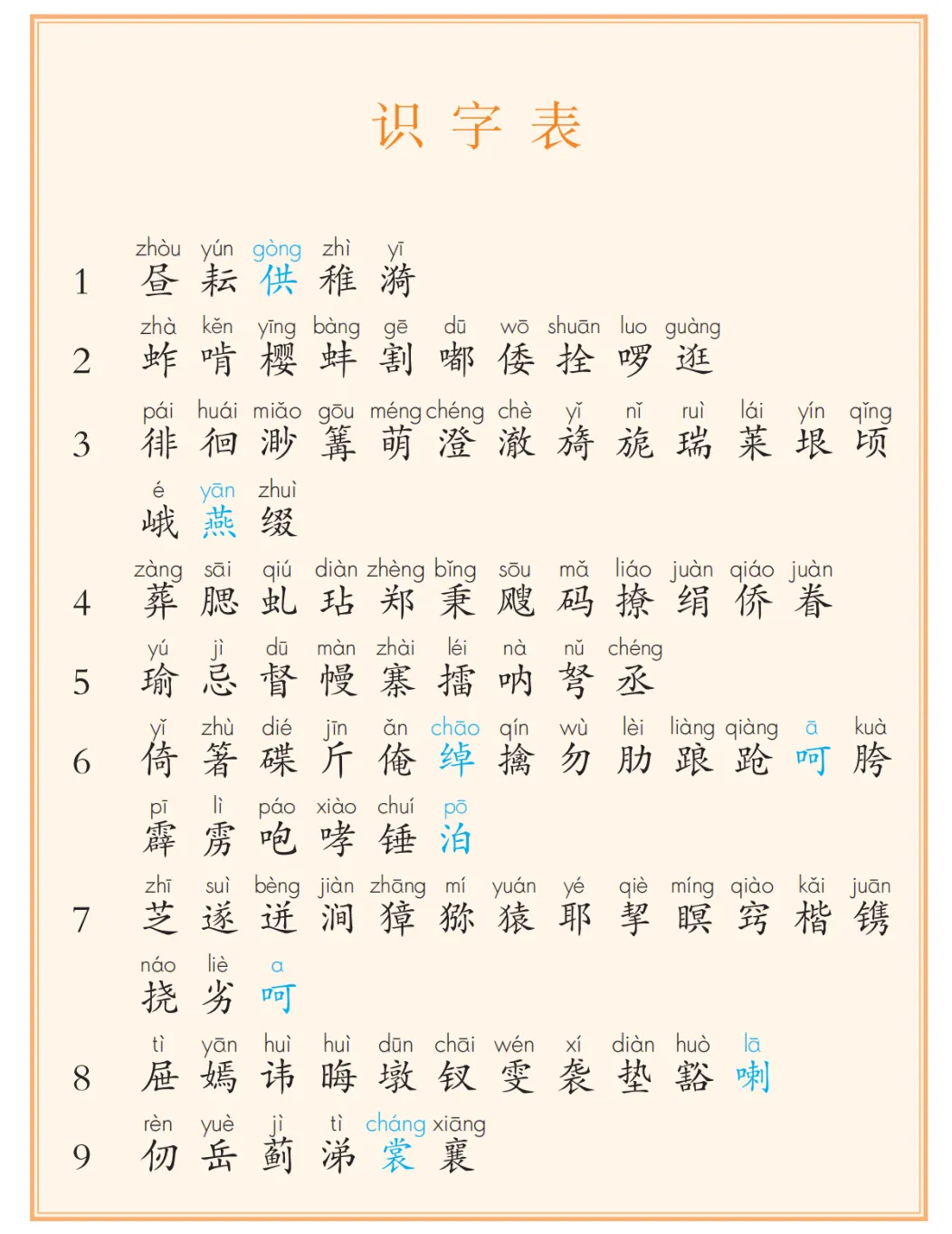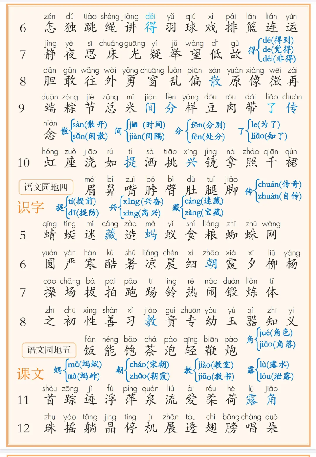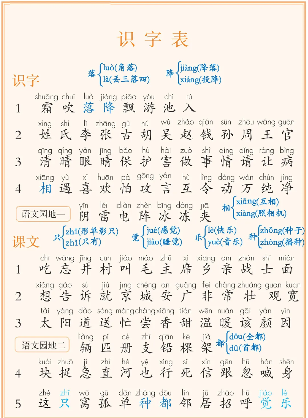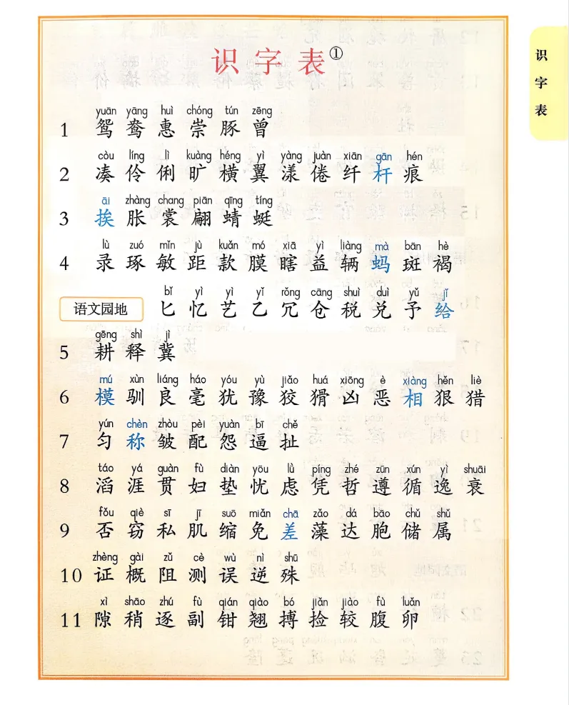 (识字表、写字表、生字表)