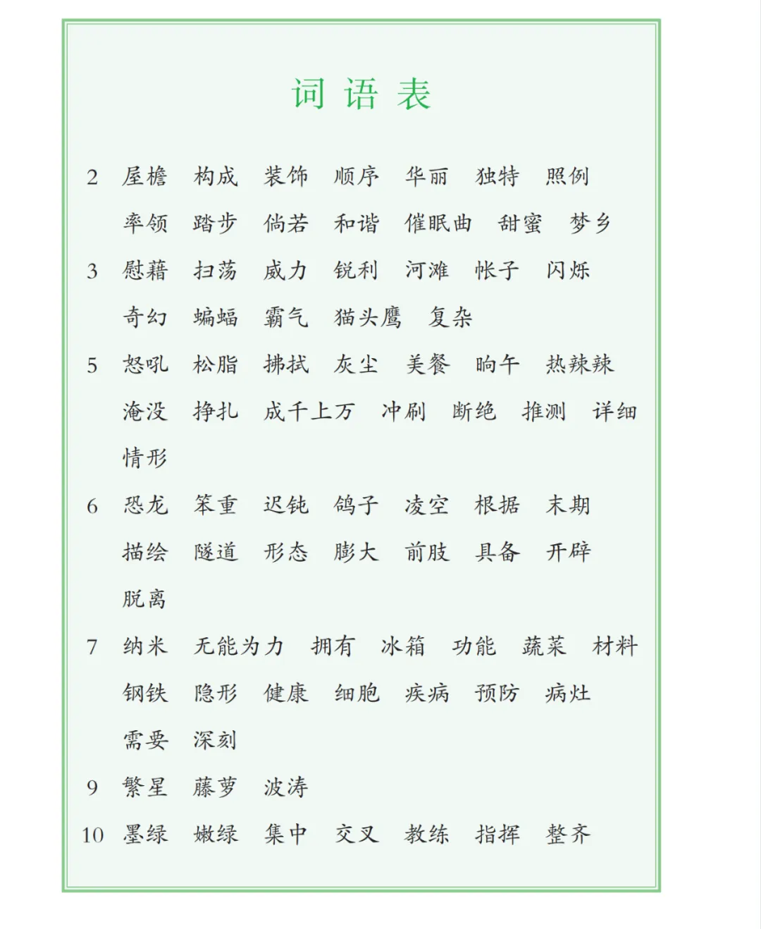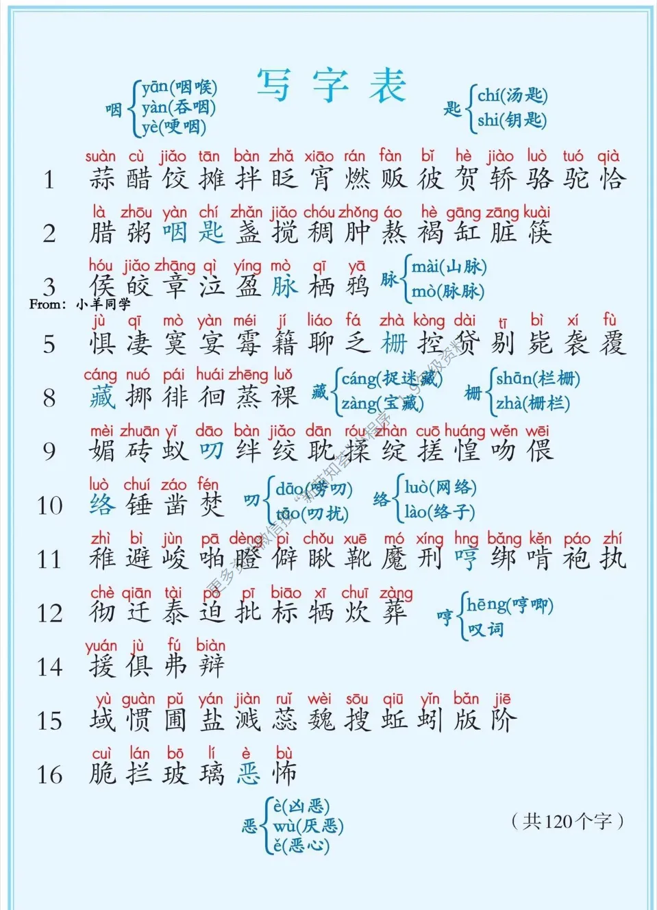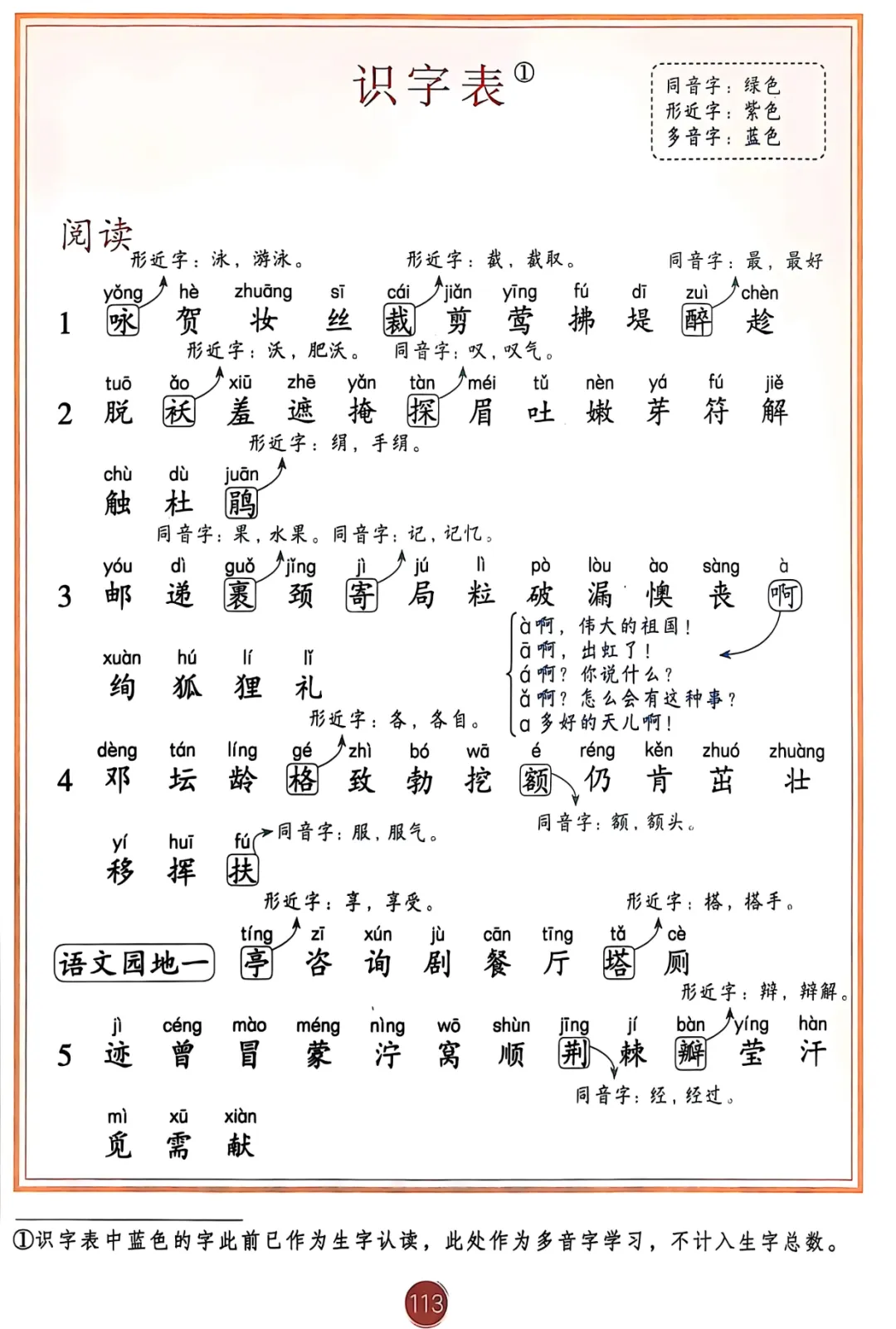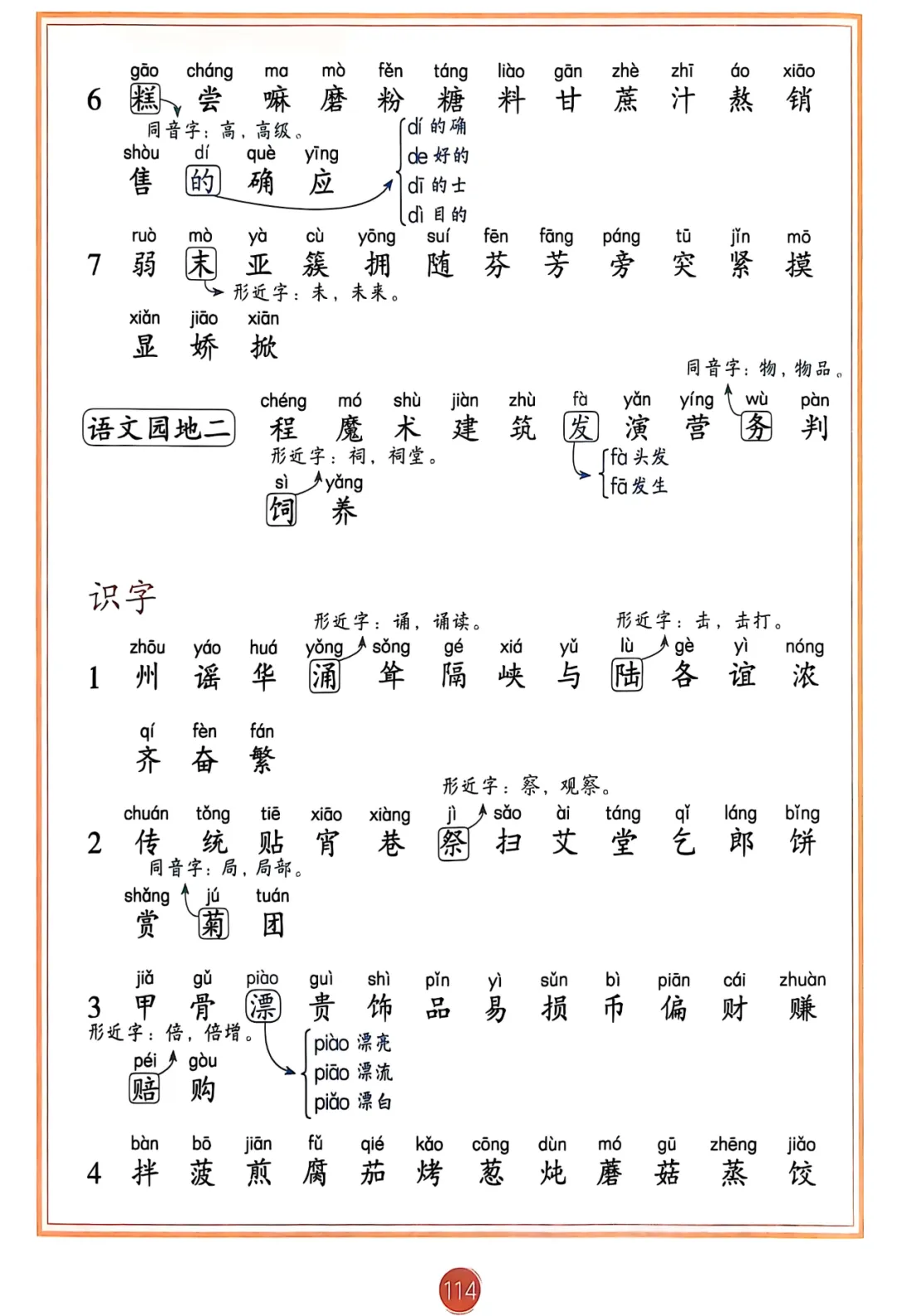 (识字表、写字表、生字表)