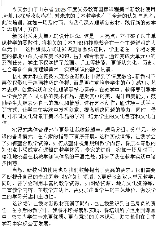 新教材是教育改革的重要载体,此次培训有效促进了新教材实施,推动教育改革在课堂教学中落地,为岳峰艺术教育提质增效。