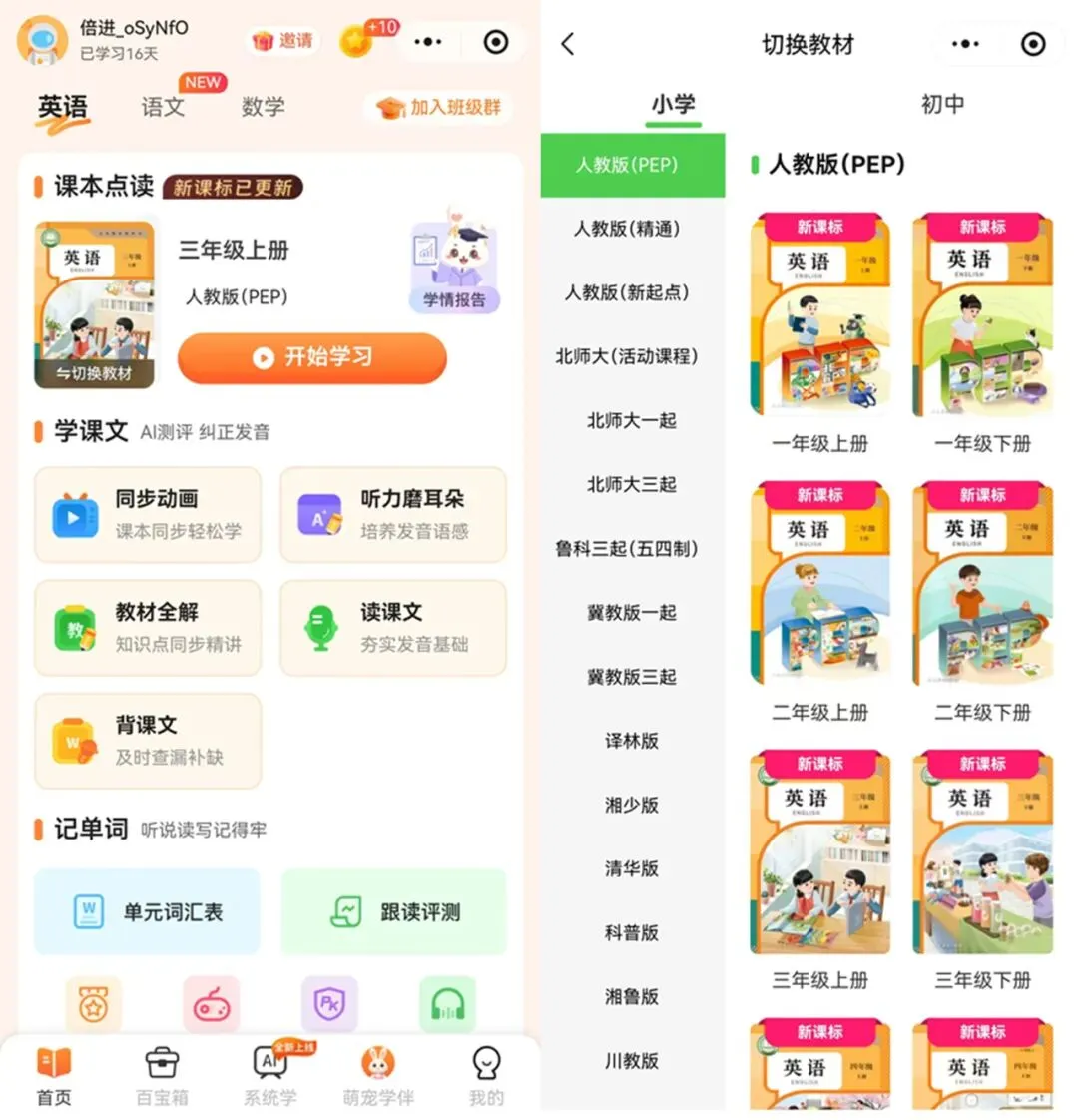 别慌!专为新课标量身打造的倍进英语点读工具微信小程序已同步更新 2026 春全新教材,覆盖小初 1-9 年级,以六大核心智能功能打造一站式英语学习闭环,每天仅需 10 分钟,让孩子吃透新教材,家长轻松不费妈,真正实现英语学习的高效进阶!