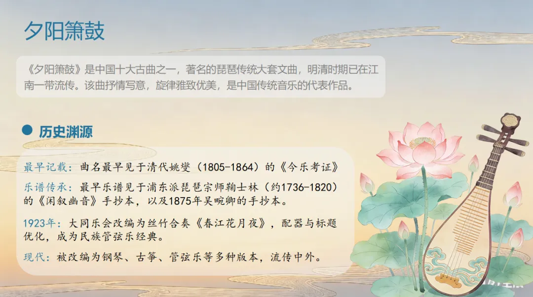 揭示课题:《夕阳箫鼓》——一首描绘月夜江景的古曲,被誉为"中国古典音乐中的水墨画"