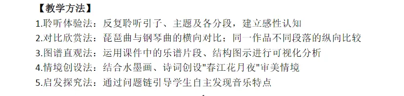1.聆听体验法:反复聆听引子、主题及各分段,建立感性认知