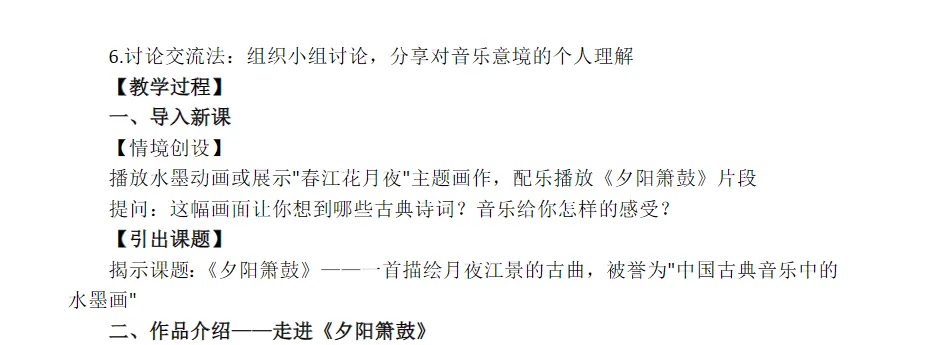 6.讨论交流法:组织小组讨论,分享对音乐意境的个人理解