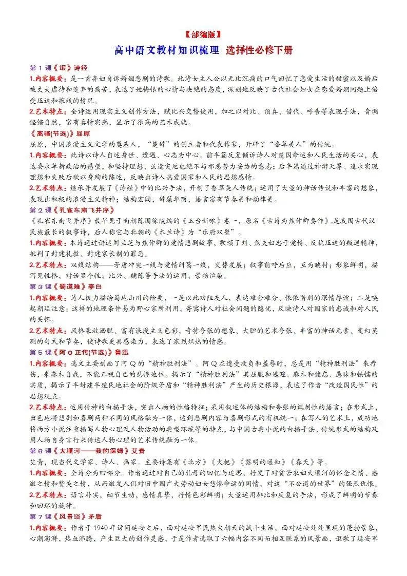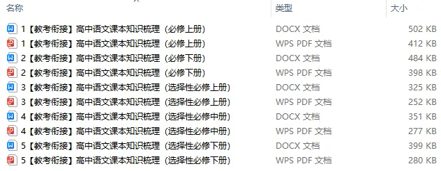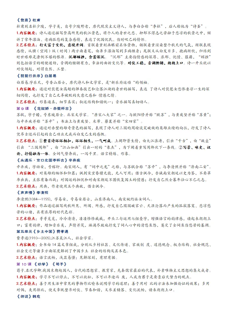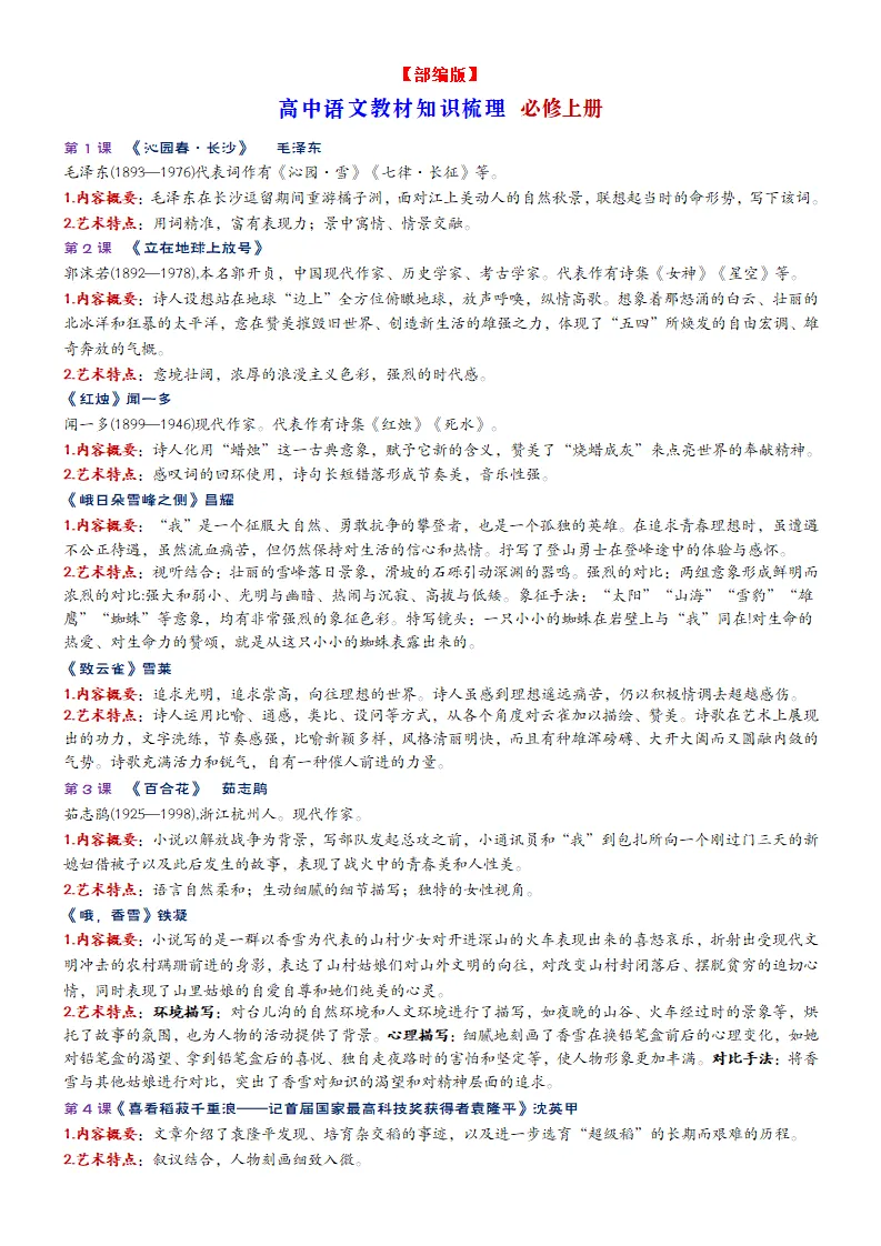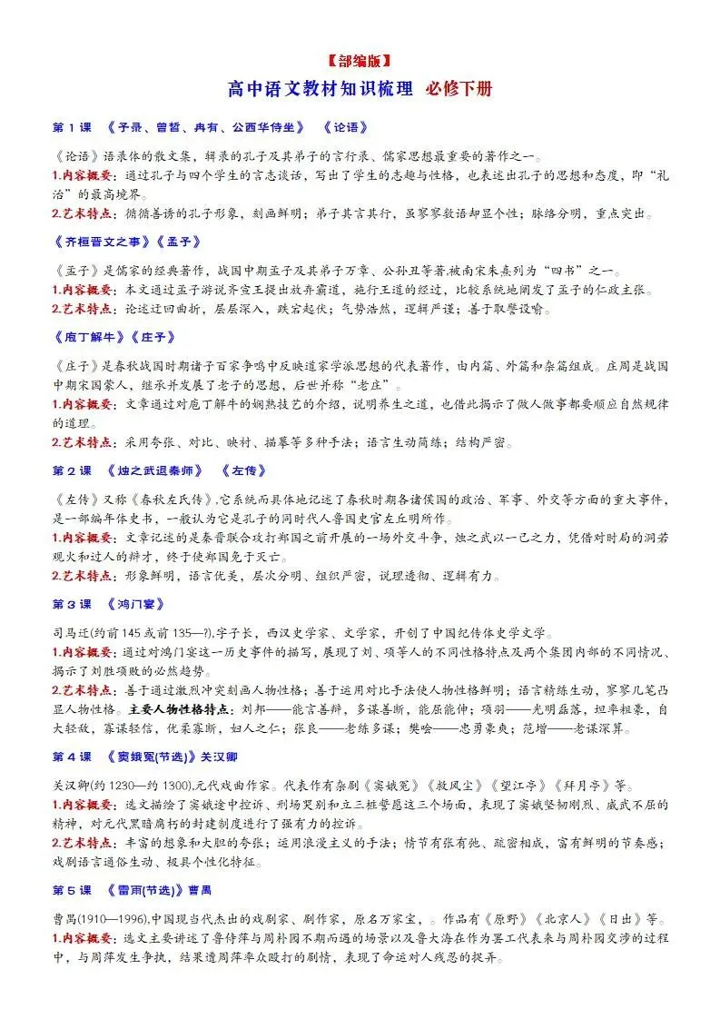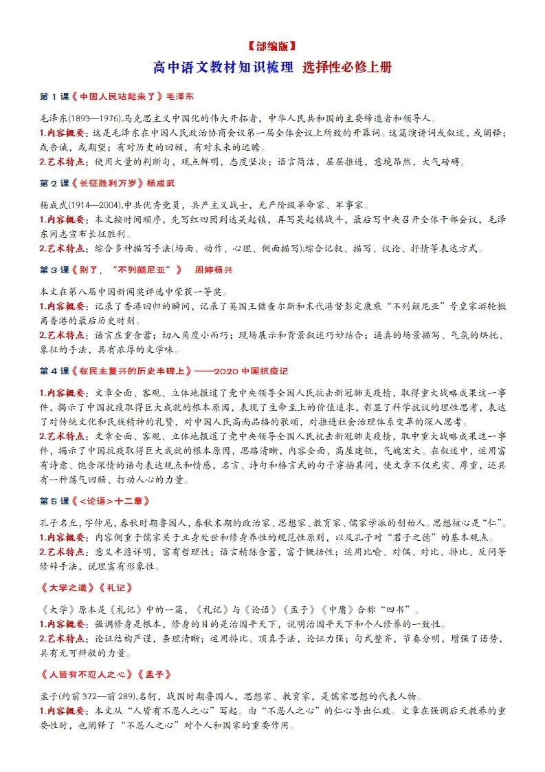 【教考衔接】高中语文 课本知识梳理(全五册)