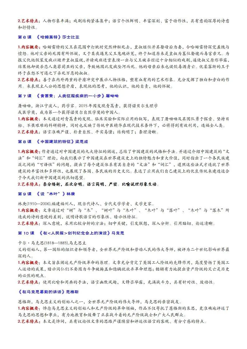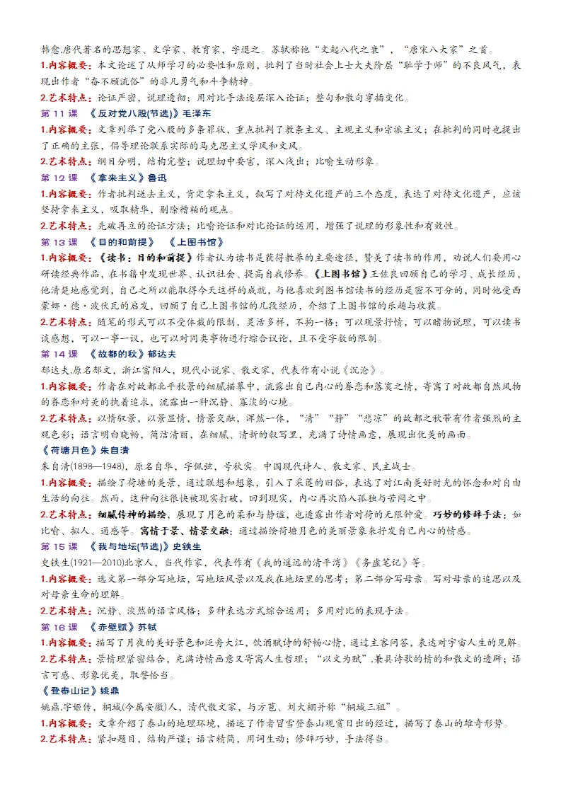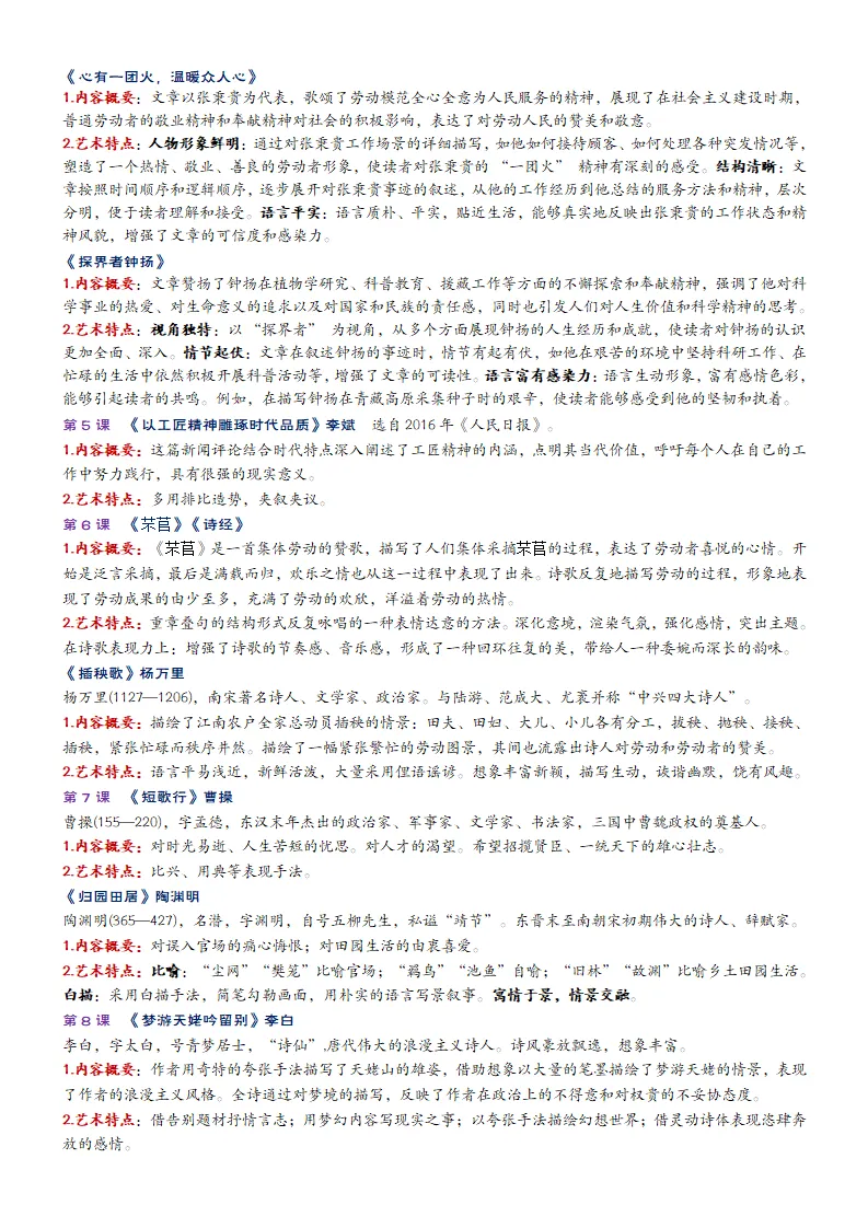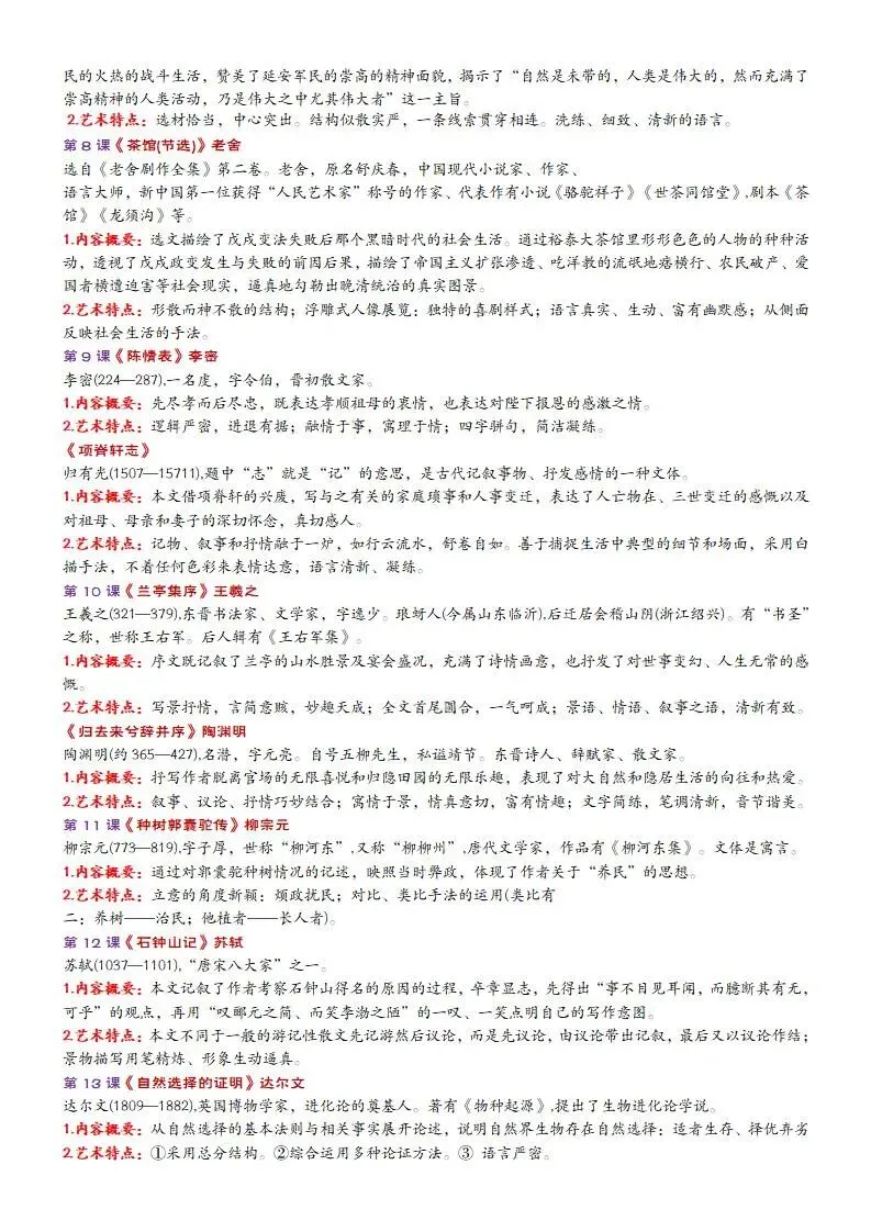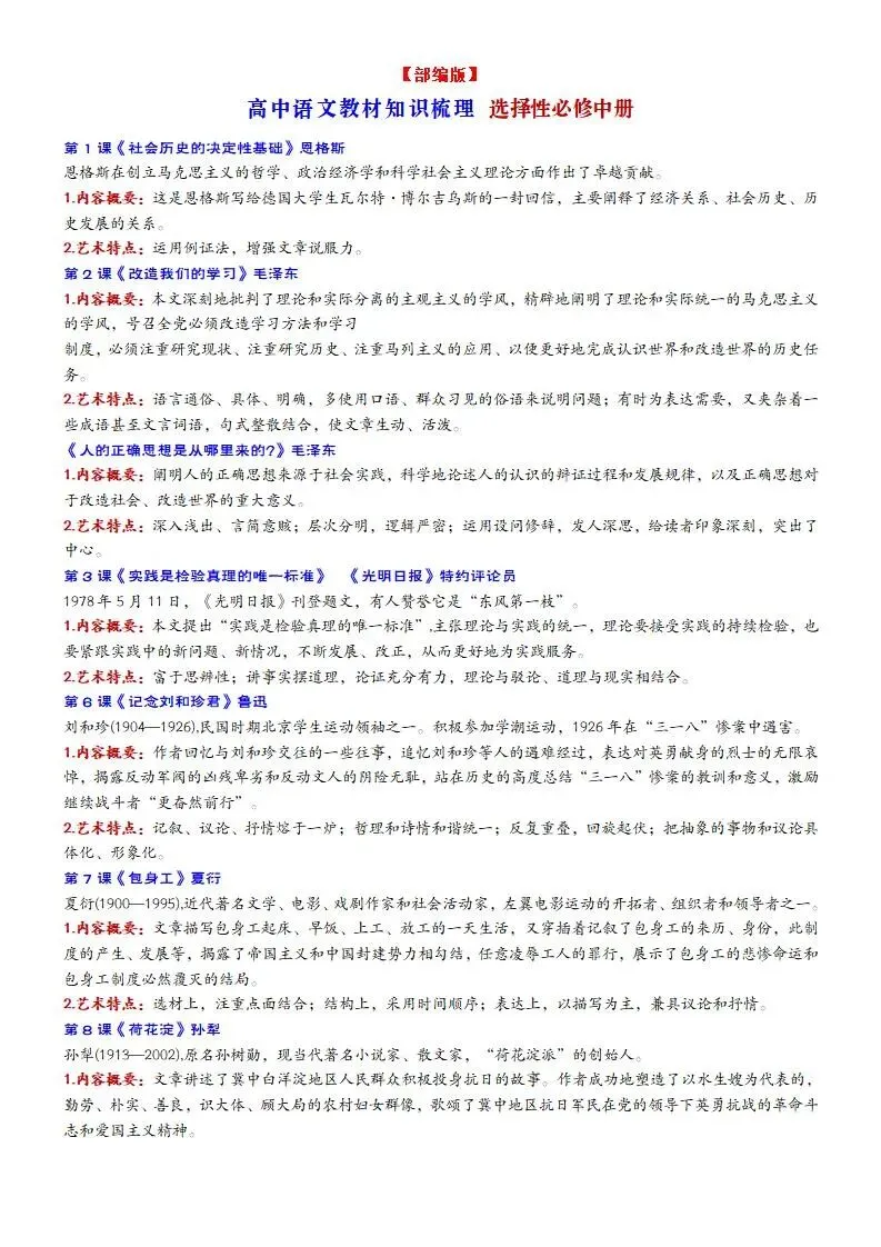 【教考衔接】高中语文 课本知识梳理(全五册)