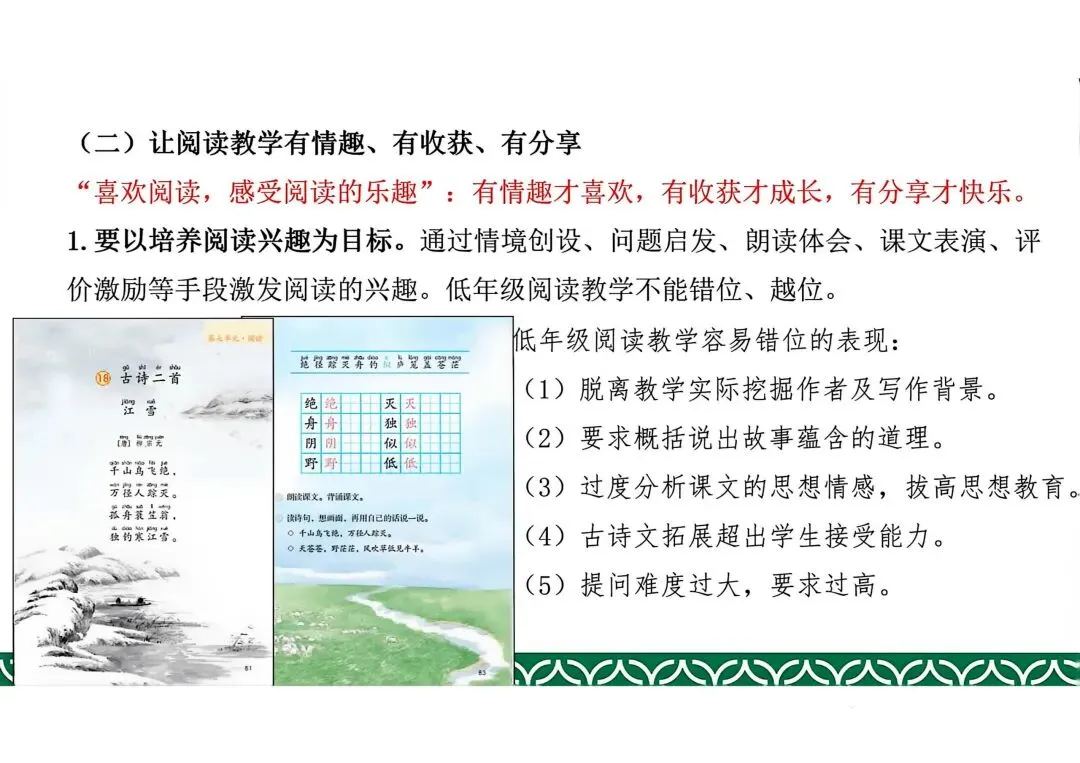 今天为大家分享人教社李明新教授《二年级下册语文教学建议》讲座核心内容。李教授立足课标意识、习惯养成、育人质量三大维度,紧扣低段语文教学规律,以典型单元为载体,系统阐释识字写字、阅读表达、情境建构、素养落地的实施路径,为低年级语文教学提供可操作、可复制、可推广的专业范式,值得低段语文教师深度学习、实践借鉴。