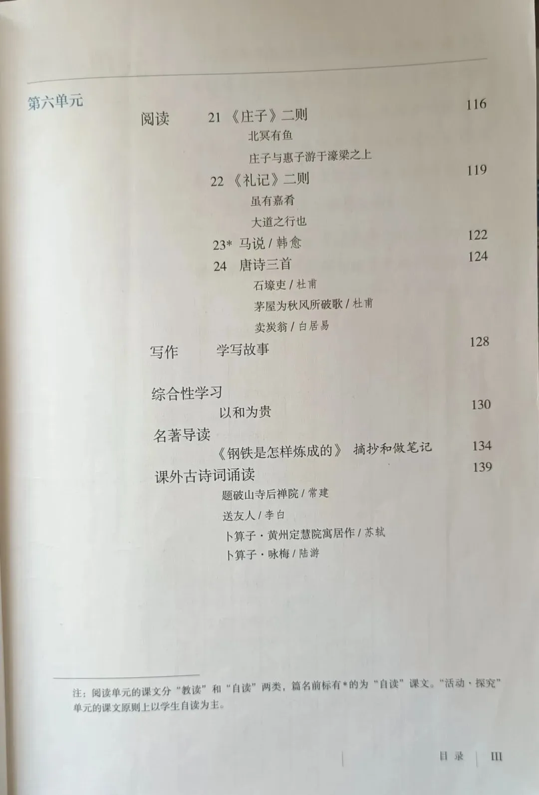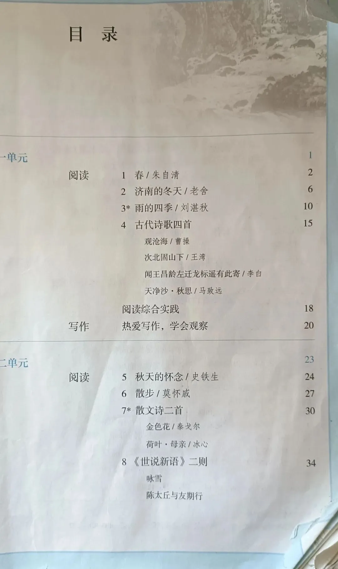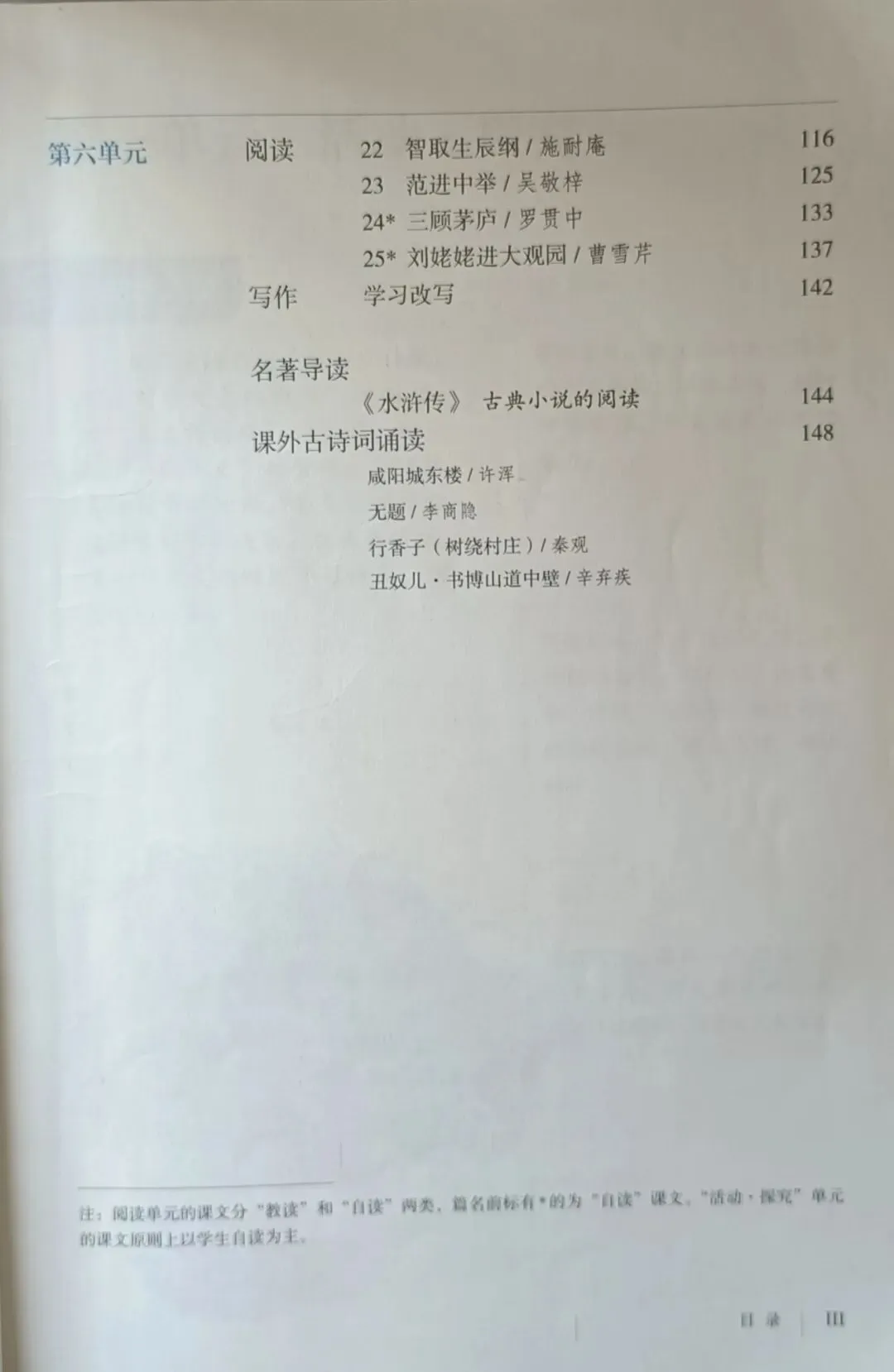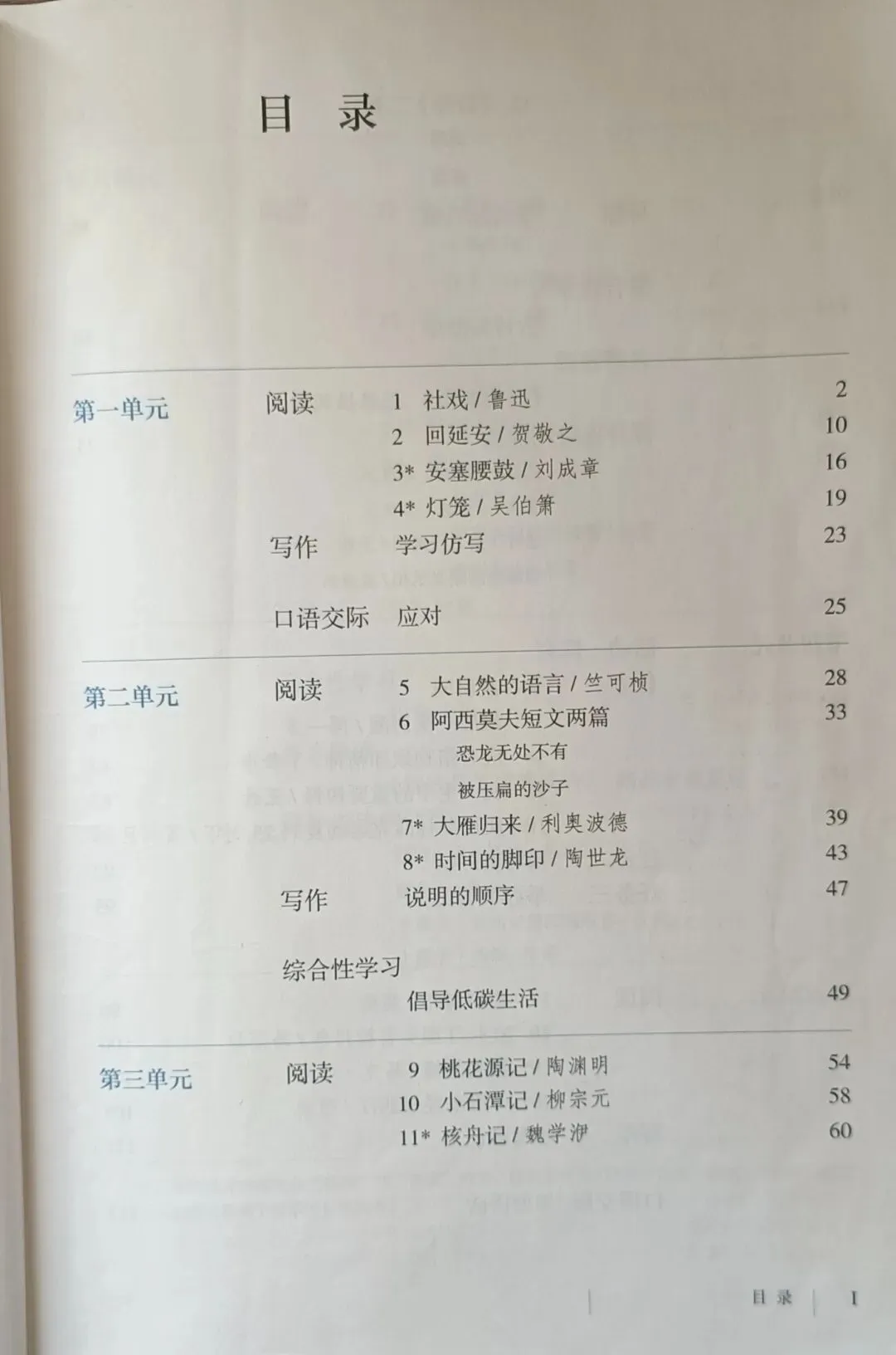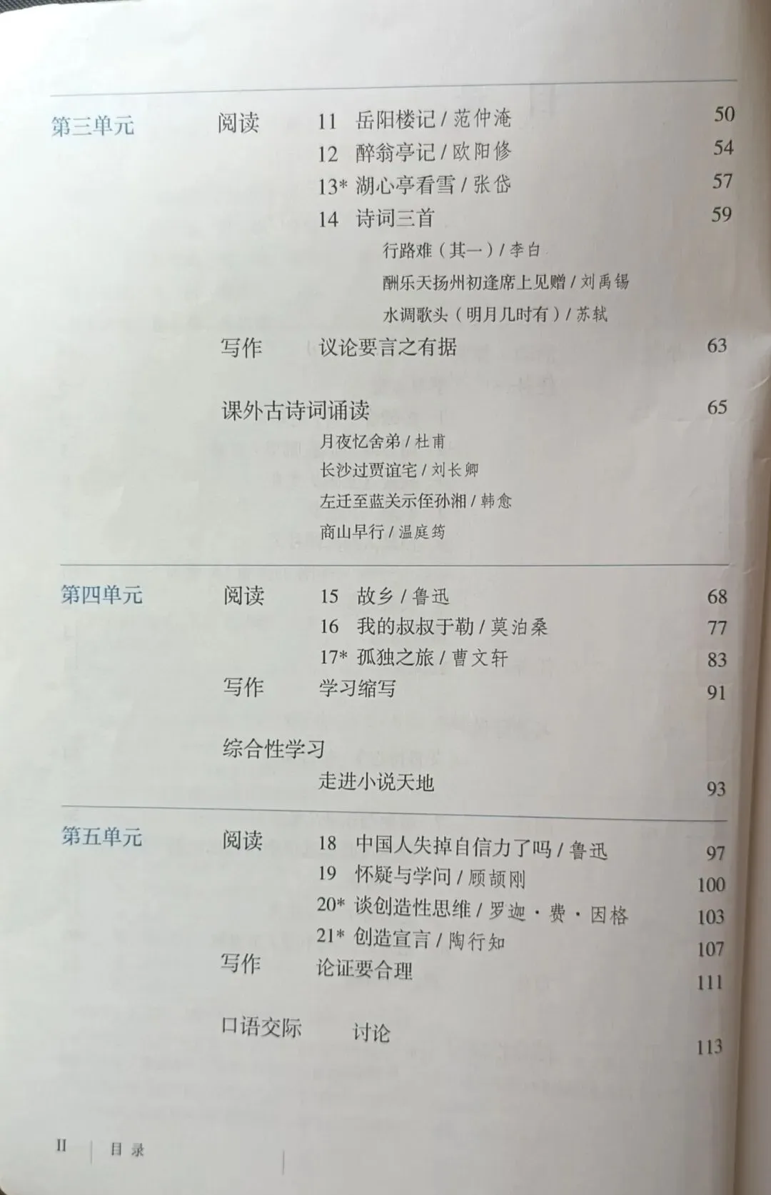 >人教版初中语文教科书七年级八年级九年级教材目录