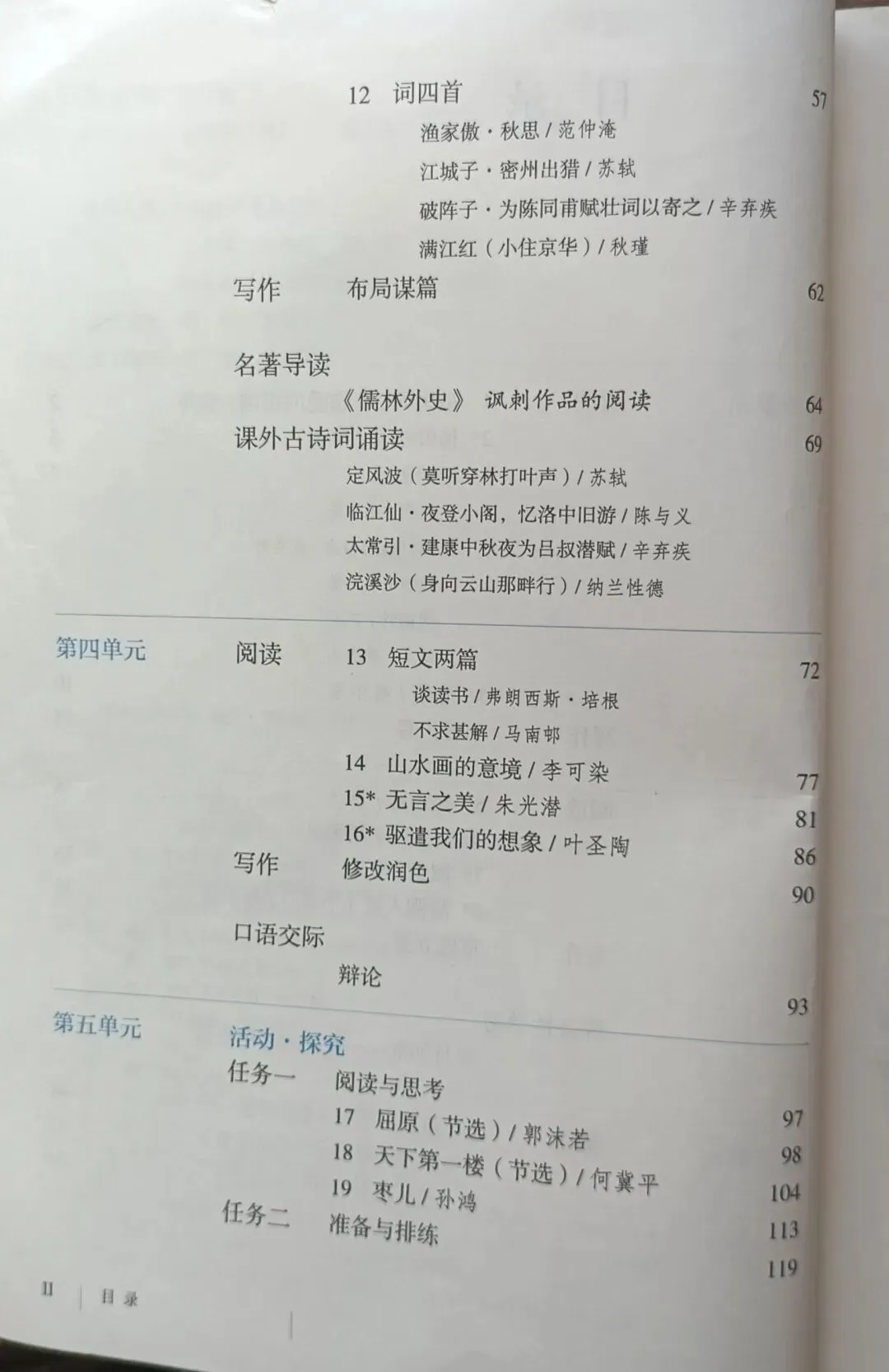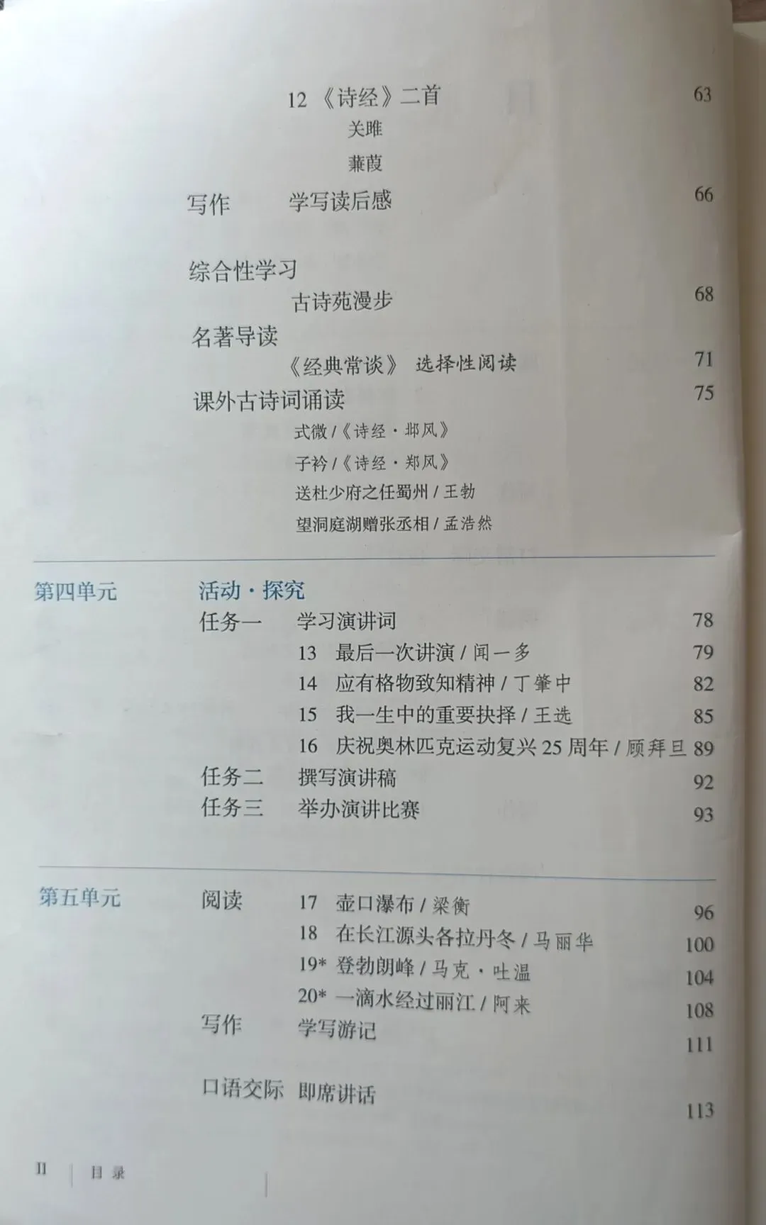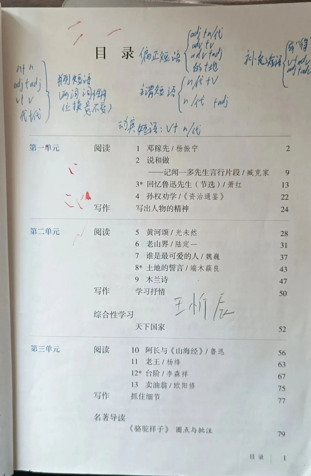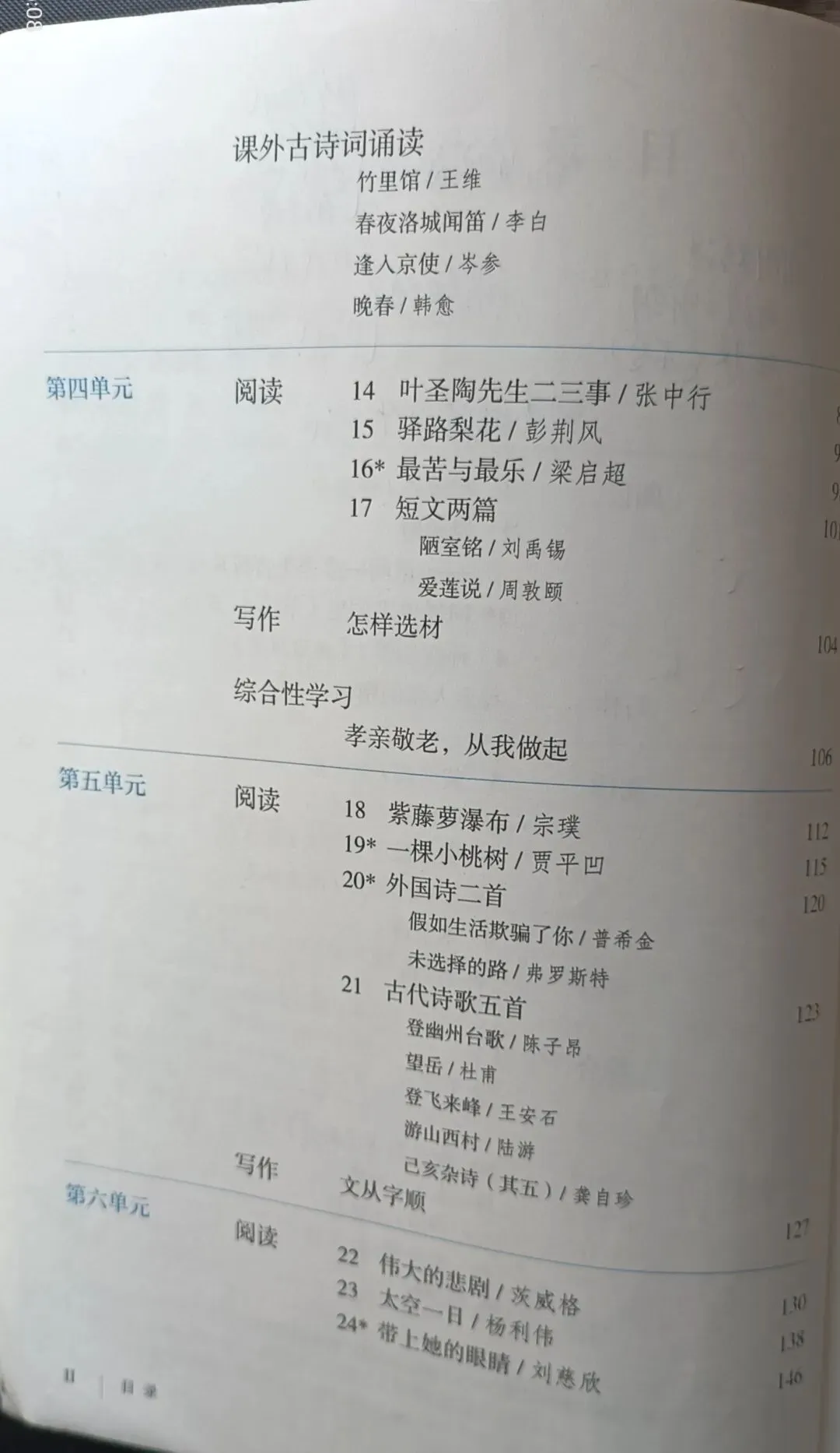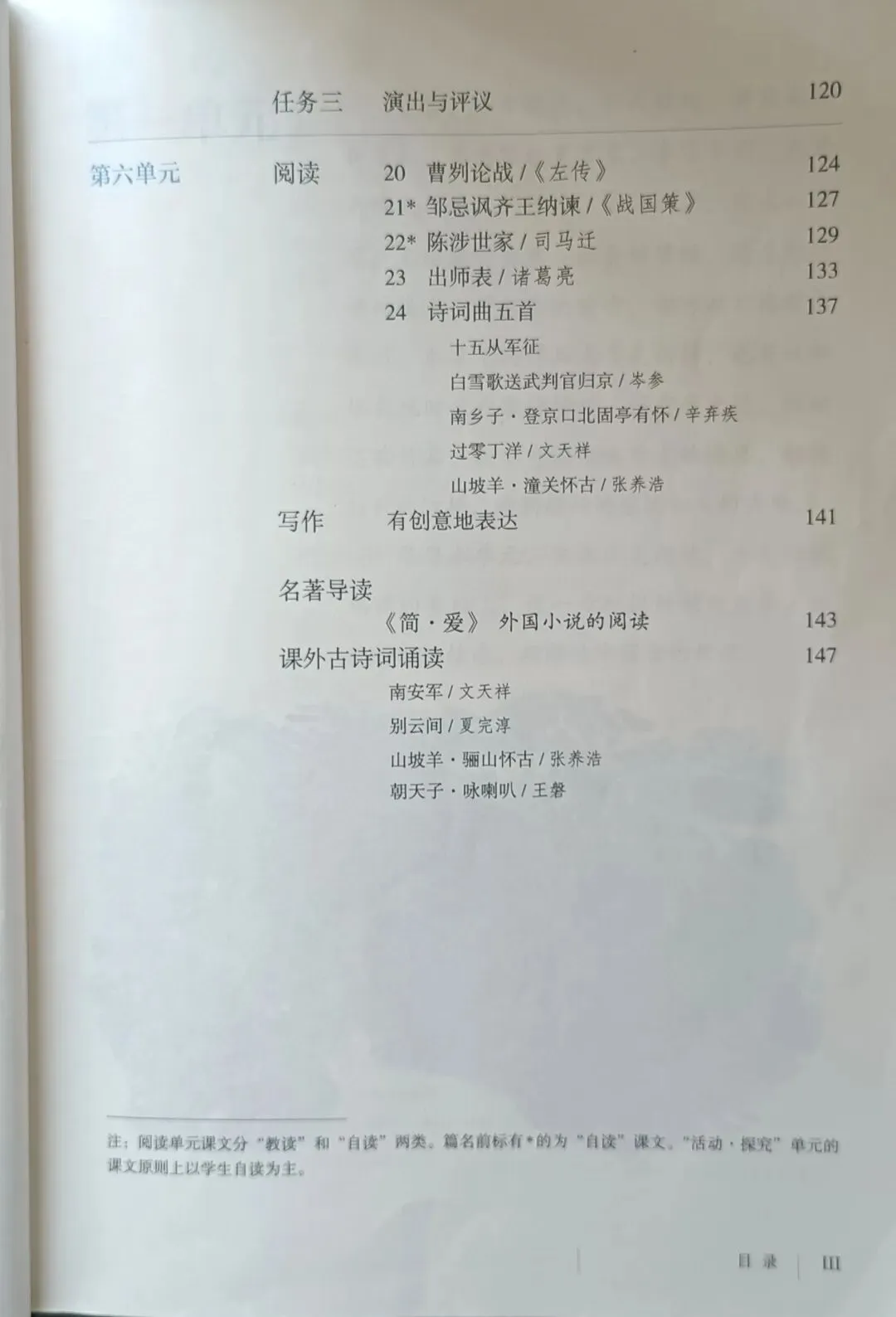 >人教版初中语文教科书七年级八年级九年级教材目录