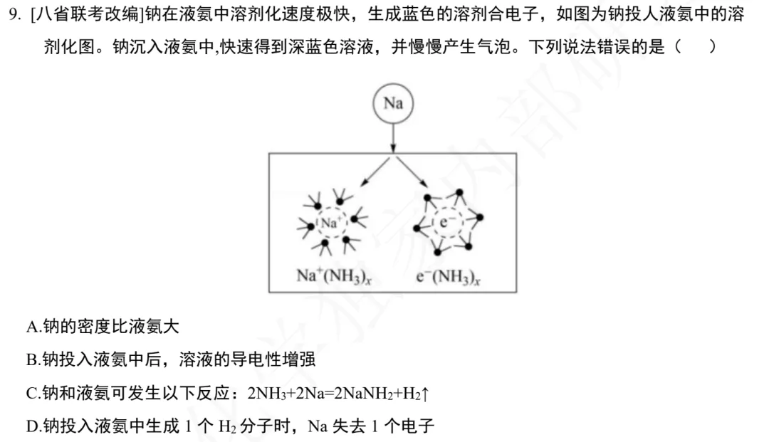 他们一看钠和液氨,脑子里就开始翻课本,翻了一圈发现课本上没教过这个反应,直接就觉得这题超纲了。