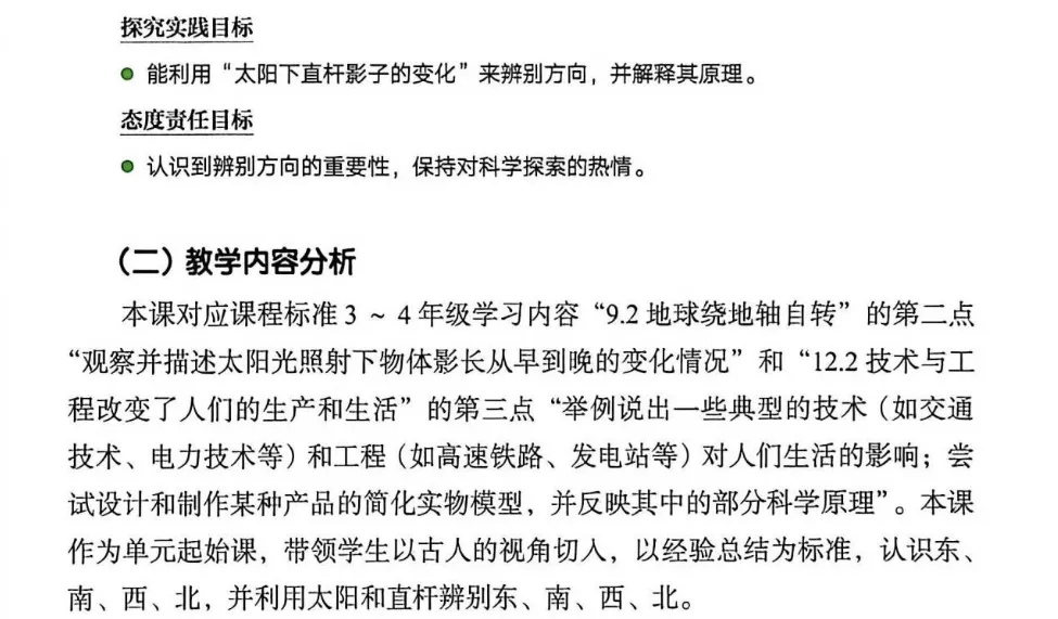 在好奇心的驱使下,了解利用自然物辨别方向的方法,积极参与观察和分享活动,认识自然现象的变化规律。