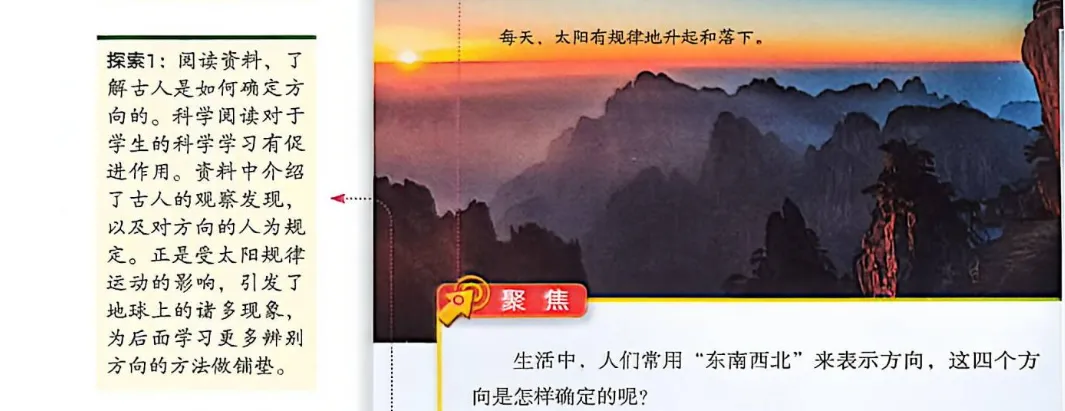 认识到太阳有规律的运动会引起部分自然物形成有规律的特点,了解这些特点可辅助人们辨别方向。