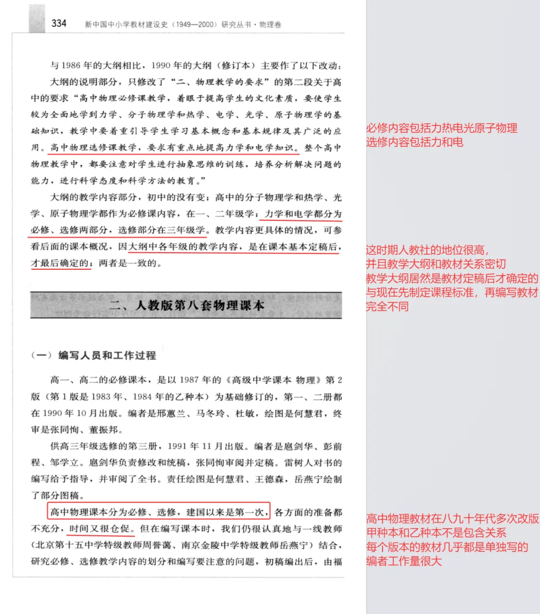 教材的官方回顾来自人民教育出版社出版的《新中国中小学教材建设史 1949-2000 研究丛书 物理卷》,简称《物理教材建设史》。
