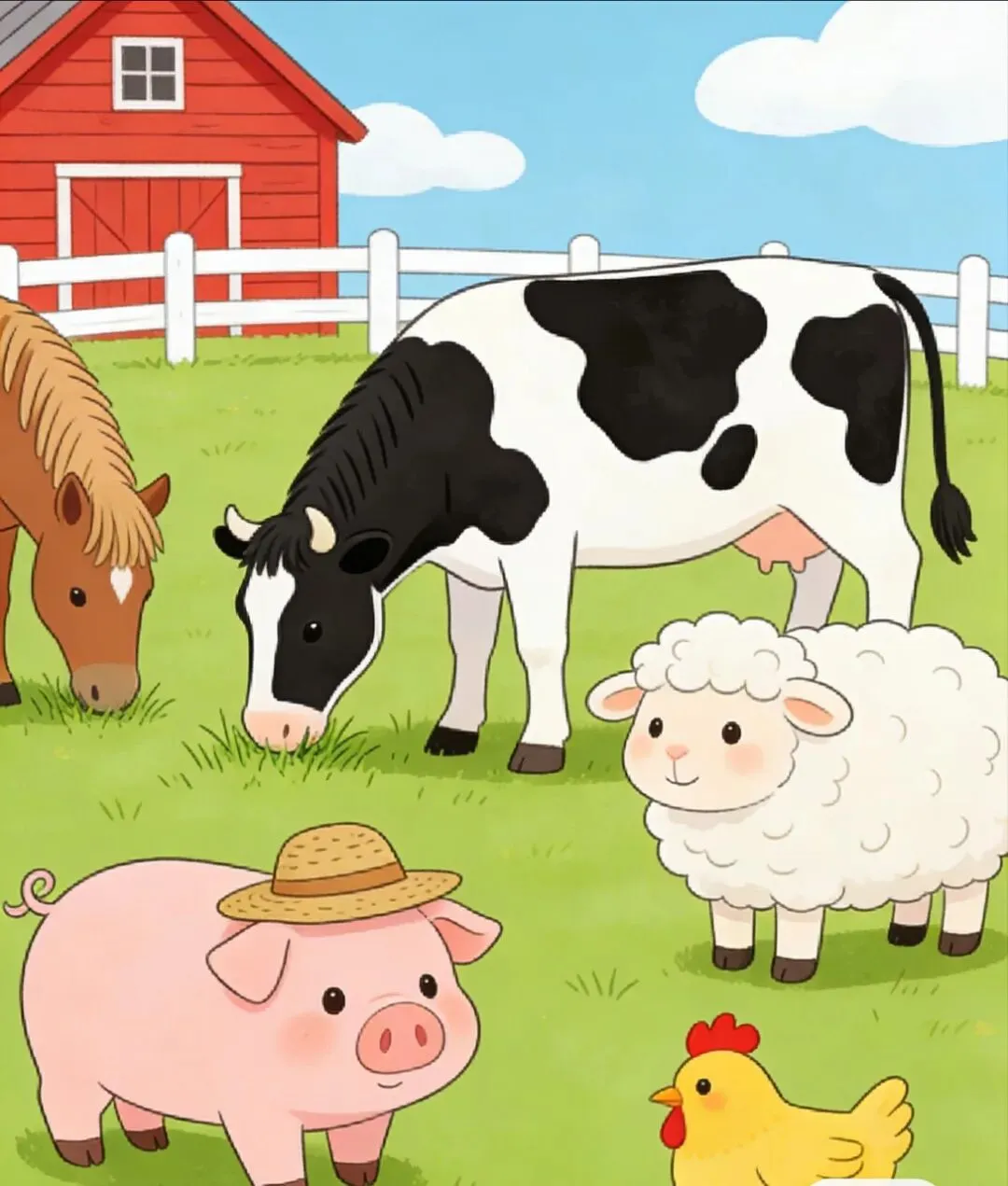 - I have a lot of animals. Cows, horses, sheep, pigs and chickens.