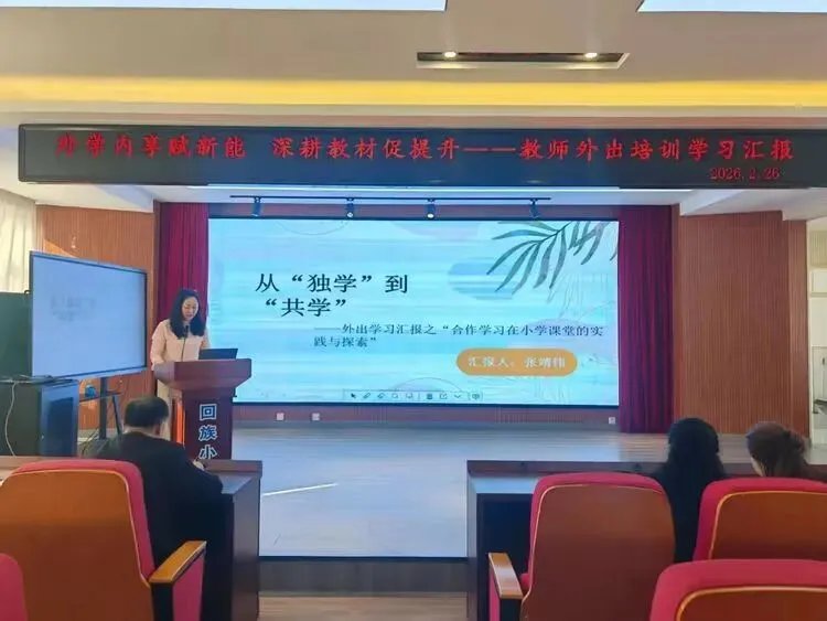 在本次外出培训汇报中,张靖伟主任聚焦“小组合作学习落地”这一教学痛点,借鉴跟岗学校课例经验,结合学校教学实际,反思了以往合作学习流于形式的问题,分享了引入合作语库的初步实践成效,并提出“精选价值任务、可视化过程、过程性评价”的优化方向,为全体教师推动小组合作提质增效提供了清晰路径。