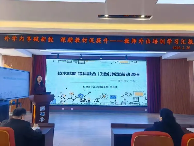 为进一步深化教育教学改革,共享优质学习资源,促进教师专业成长。2月28日,松原市宁江区回族小学隆重举行外出培训汇报交流活动。本次活动由李聪颖副校长主持,崔慧珠校长带领魏丽敏、张靖伟、王文华、李井荣、吕佳漫几位教师作为参训代表进行汇报分享,营造出互学互鉴、共同进步的良好教研氛围。全体教师共同参与,以学习促提升、以分享促成长,营造了浓厚的教研氛围。