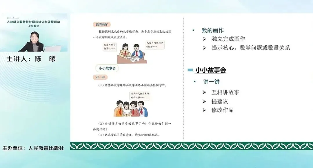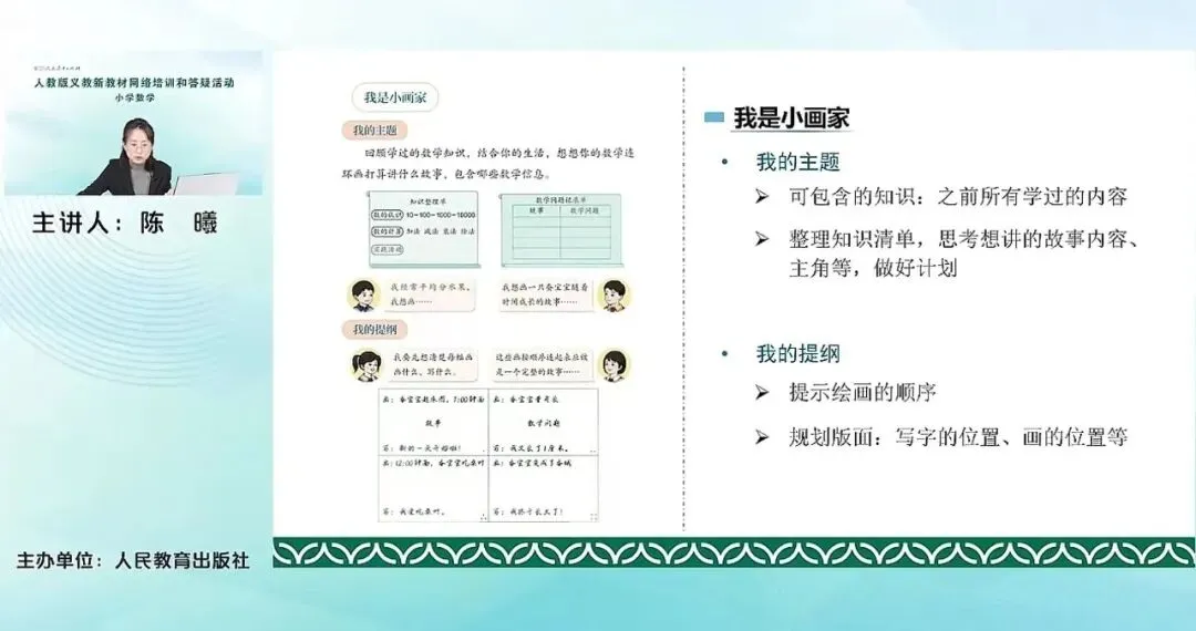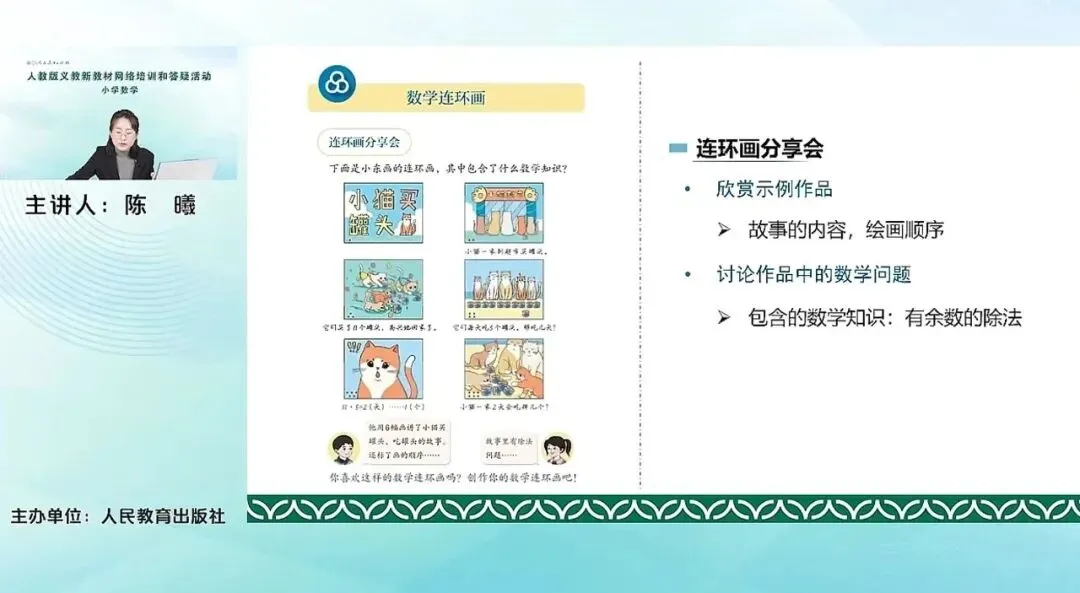 以上是数学连环画这个综合实践活动。其实可以看到数学连环画活动前面是有一个主题的总结复习关联的环节,这个复习其实也可以和我们第五单元复习与关联内容进行一个融合,在复习关联的基础上再进行活动也是没有问题的。
