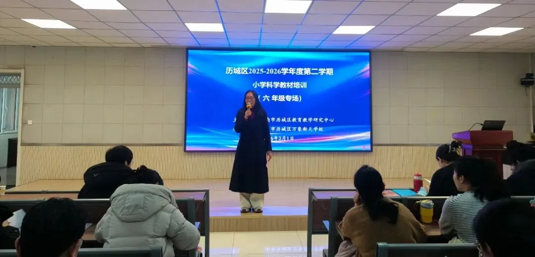 新学期,新起点,新征程。为深入把握青岛版小学科学六年级下册教材编写理念与教学要求,精准落实新课标核心素养目标,切实提升全区科学教师的教材解读能力和课堂教学水平,历城区于 2026 年 3 月 1 日上午在万象新天学校东校区组织开展了六年级下册科学教材专题培训活动。全体科学教师齐聚一堂,深研教材、共探教法、凝聚智慧,为新学期科学教学工作筑牢根基。
