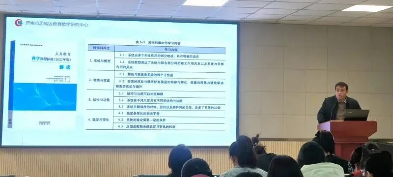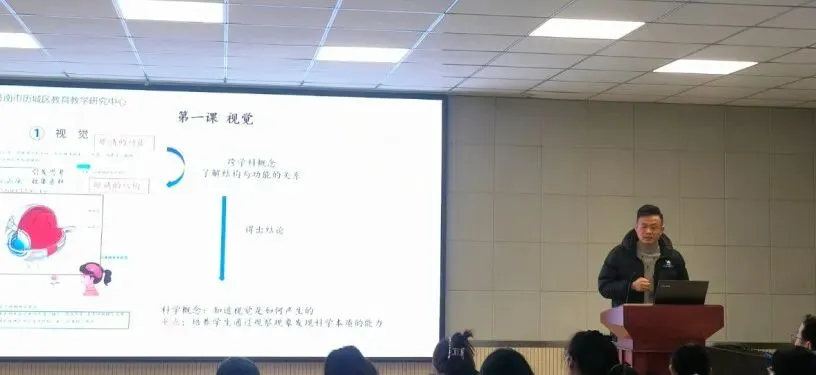 王立勇老师率先聚焦第一单元,开展单元整体解读。为让抽象的教材知识变得通俗易懂,王老师结合生活中的经典小例子,将单元教学目标、知识重难点、探究活动设计等内容娓娓道来,让老师们清晰把握本单元的教学思路,在探究中理解科学原理。