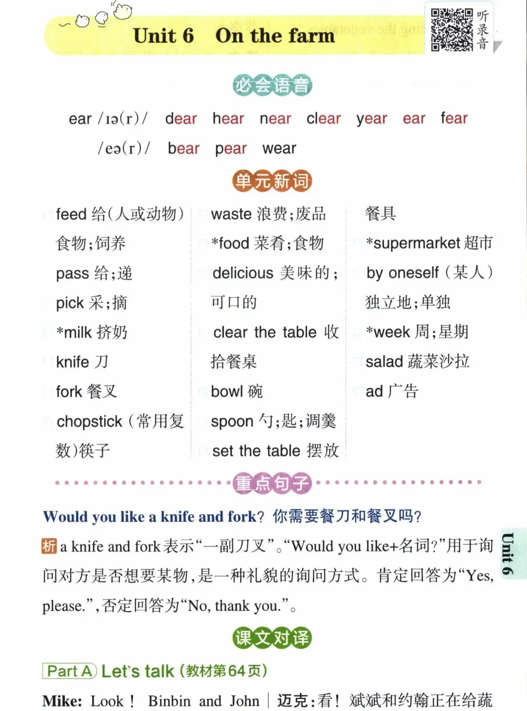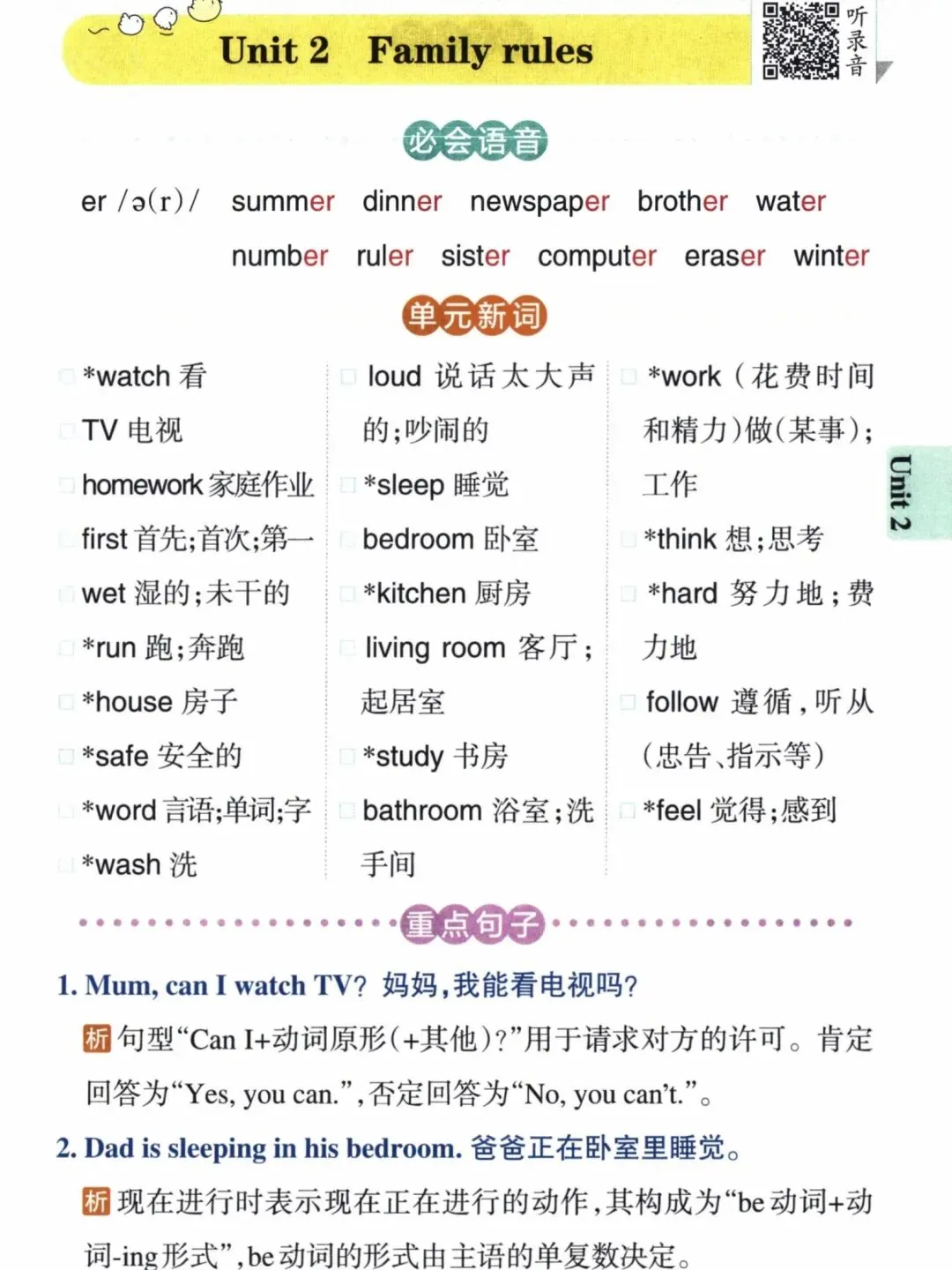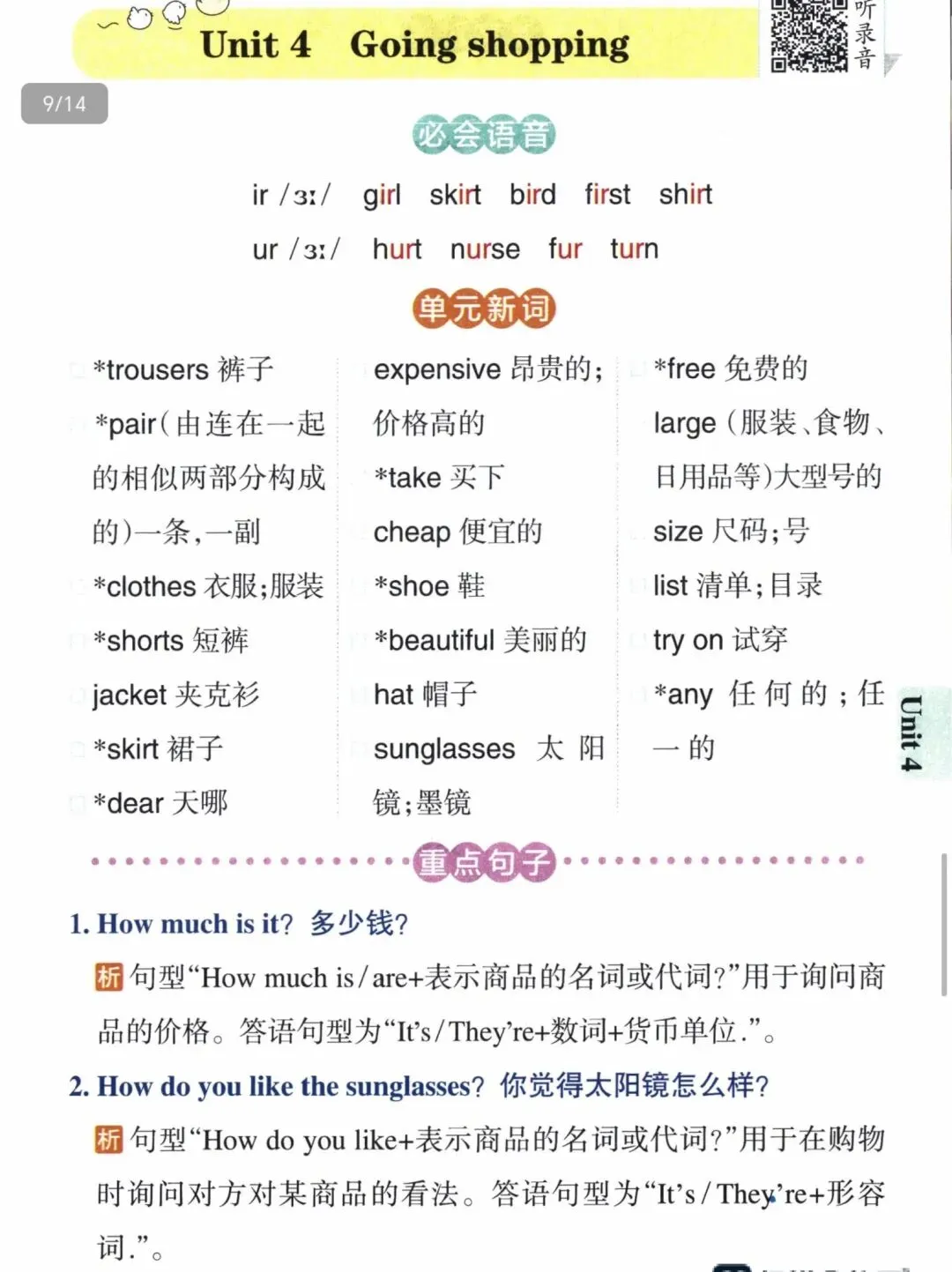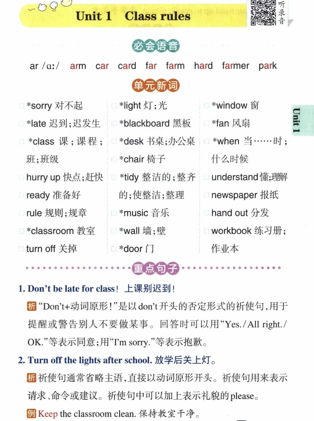 小学英语四年级下册课本单元知识点背诵(包含必会语音,单元新词,重点句子,课文对译)