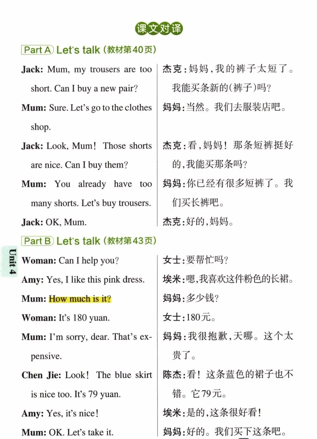 >小学英语四年级下册课本知识点背诵与默写训练