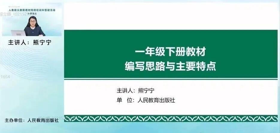 各位老师好,我是人民教育出版社小学语文室的编辑熊宁宁,今天和大家一起交流统编小学语文一年级下册教材。