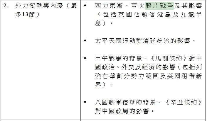 今年9月香港中学二年级中国历史科将采用新课程大纲,上周《明报》通过对比新老书本后发现,一些新版书对鸦片战争部分做了较大修改,删除了以往“洗白”英国的内容。