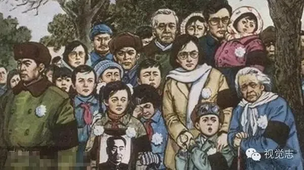 天灰蒙蒙的,又阴又冷。长安街两旁的人行道上挤满了男女老少。路那样长,人那样多,向东望不见头,向西望不见尾。人们臂上都缠着黑纱,胸前都佩着白花,眼睛都望着周总理的灵车将要开来的方向。