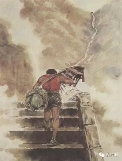 从泰山回来,我画了一幅画——在陡直的似乎没有尽头的山道上,一个穿红背心的挑山工给肩头的重物压弯了腰,他一步一步地向上登攀。这幅画一直挂在我的书桌前,多年来不曾换掉,因为我需要它。