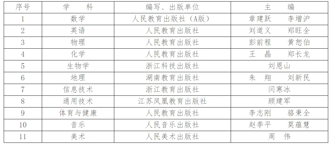 根据教育部的统一部署,我省普通高中将于2020年秋季学期开始实施新课程、使用新教材。我局根据《浙江省教育厅办公室关于做好普通高中新教材选用工作的通知》(浙教办教材〔2020〕4号)要求,依据规定程序,选定了我市普通高中新教材使用版本。现将选用结果公示如下: