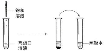 现象与解释:有沉淀的析出,析出的沉淀可以溶解在水中。向蛋白质溶液中加入某些浓的无机盐溶液后,蛋白质的溶解度减小,使蛋白质凝聚析出,这种作用叫盐析。盐析是一个可逆的过程。