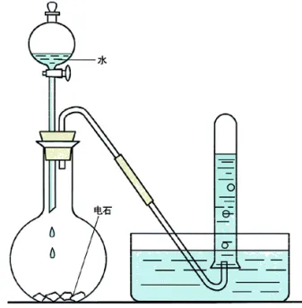 反应原理:CH3CH2OHCH2===CH2↑+H2O现象与解释:乙烯在空气中燃烧,火焰明亮,并伴有黑烟。乙烯中碳的质量分数较高,燃烧时有黑烟产生。实验:把乙烯通入盛有KMnO4酸性溶液的试管里,观察试管里溶液颜色的变化。现象与解释:KMnO4酸性溶液的紫色褪去,说明乙烯能被氧化剂KMnO4氧化,它的化学性质比烷烃活泼。实验:把乙烯通入盛有溴的四氯化碳溶液的试管里,观察试管里溶液颜色的变化。现象与解释:溴的红棕色褪去,说明乙烯与溴发生了反应。实验:在平底烧瓶(或大试管、广口瓶、锥形瓶等)中加入几块电石(CaC2),塞好双孔橡胶塞,打开分液漏斗活塞使水滴下,用排水法收集气体。