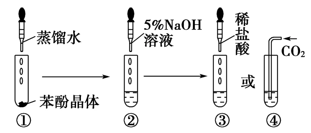 现象与解释:可以看到,二氧化碳使澄清溶液又变混浊。这是由于苯酚的酸性比碳酸弱,易溶于水的苯酚钠在碳酸的作用下,重新又生成了苯酚。