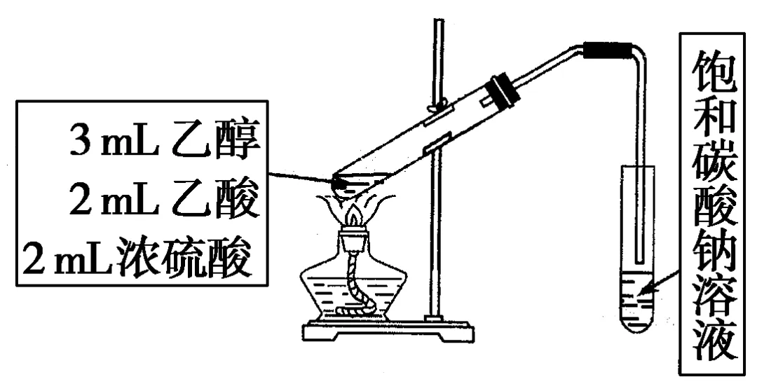 反应原理:CH3CHO+2Cu(OH)2+NaOHCH3COONa+Cu2O↓+3H2O实验:向1支盛有少量Na2CO3粉末的试管里,加入约3mL乙酸溶液,观察有什么现象发生。现象与解释:可以看到试管里有气泡产生,说明乙酸的酸性强于碳酸。实验:在1支试管中加入3mL乙醇,然后边摇动试管边加入2 mL浓硫酸和2 mL冰醋酸。用酒精灯小心均匀地加热试管3min~5min,产生的气体经导管通到Na2CO3饱和溶液的液面上。现象与解释:在液面上看到有透明的油状液体产生,并可闻到香味。这种有香味的透明油状液体是乙酸乙酯。实验:在3支试管中各滴入6滴乙酸乙酯。向第一支试管里加蒸馏水5mL;向第二支试管里加稀硫酸(1:5)0.5mL、蒸馏水5mL;向第三支试管里加30%的NaOH溶液0.5mL、蒸馏水5mL。振荡均匀后,把3支试管都放入70℃~80℃的水浴里加热。