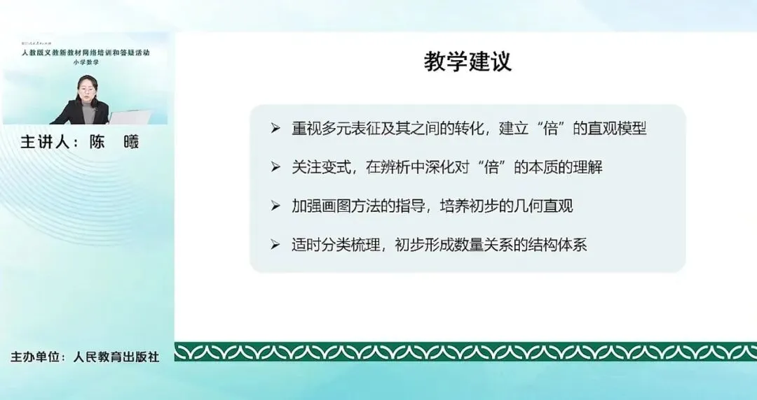第一条,重视多元表征及其之间的转化,建立倍的直观模型。