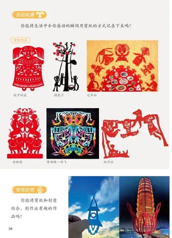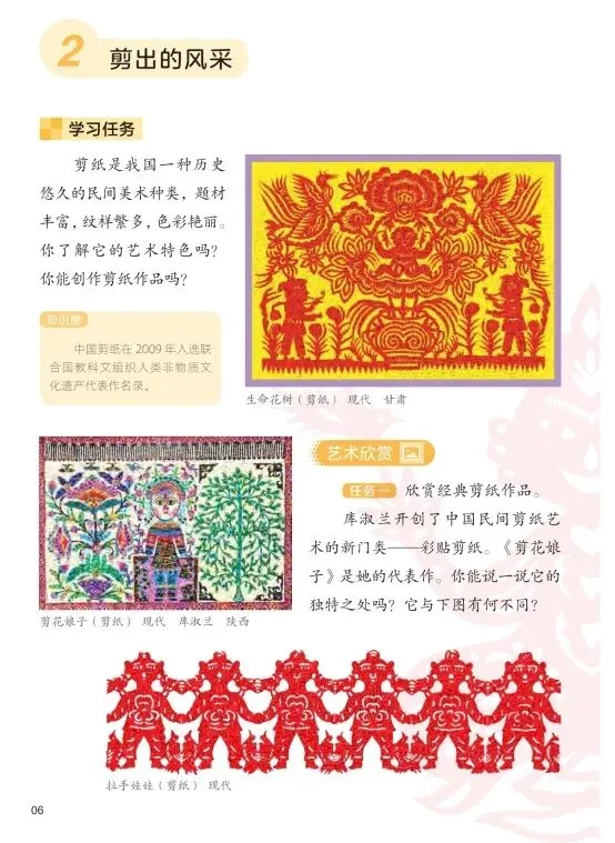 艺术实践:欣赏·评述 / 造型·表现(本单元以欣赏评述民间美术为基础,引导学生进行剪纸、泥塑等造型表现活动)