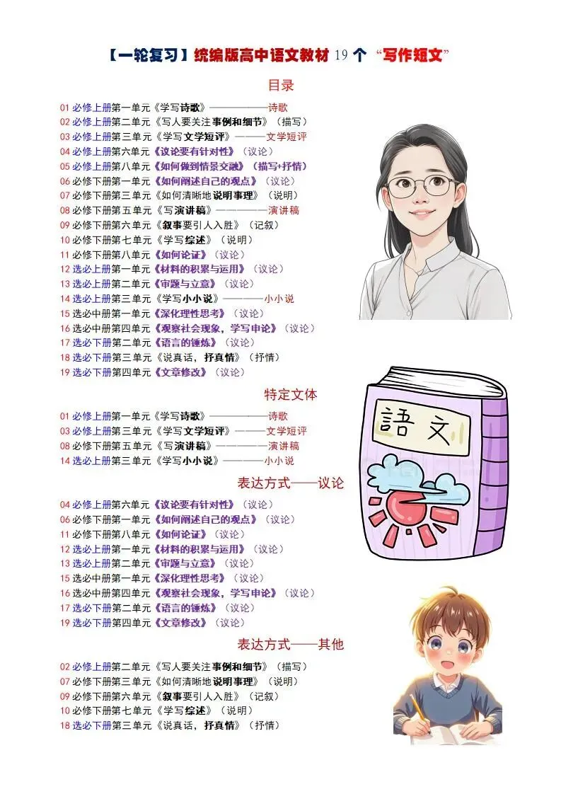 >【教考衔接】统编版高中语文教材18个写作“知识短文”辑录(含知识导图)