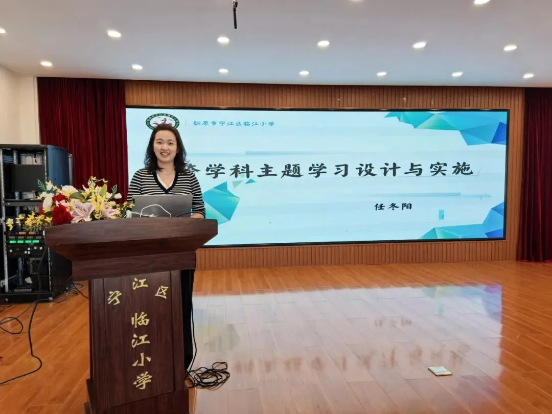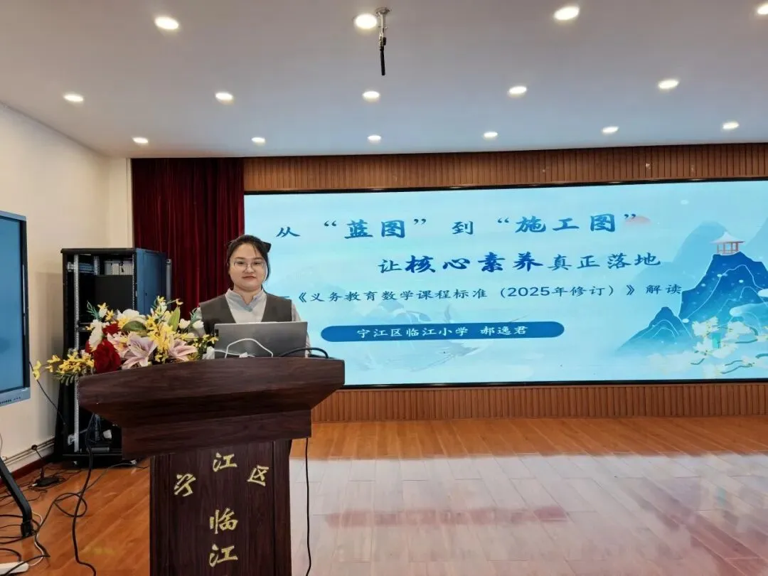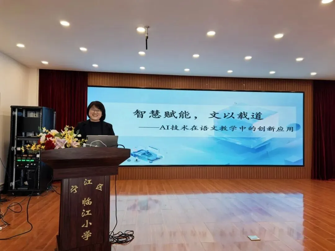 任冬阳副校长以《跨学科主题学习设计与实施》为题,从理论到案例,勾勒出跨学科主题学习的实施路径。郝逸君主任带来《从“蓝图”到“施工图”——〈义务教育数学课程标准(2025年修订)〉解读》,她将抽象的理念化为可操作的课堂策略,让“核心素养”不再悬浮于云端。郑海丽主任则以《智慧赋能,文以载道——AI技术在语文教学中的创新应用》点燃全场,生动的演示让教师们看到技术如何为课堂插上翅膀。三场讲座,三个维度,既有思想的深度,又有实践的广度,教师们专注聆听,笔尖沙沙,记录下每一处灵感的火花。