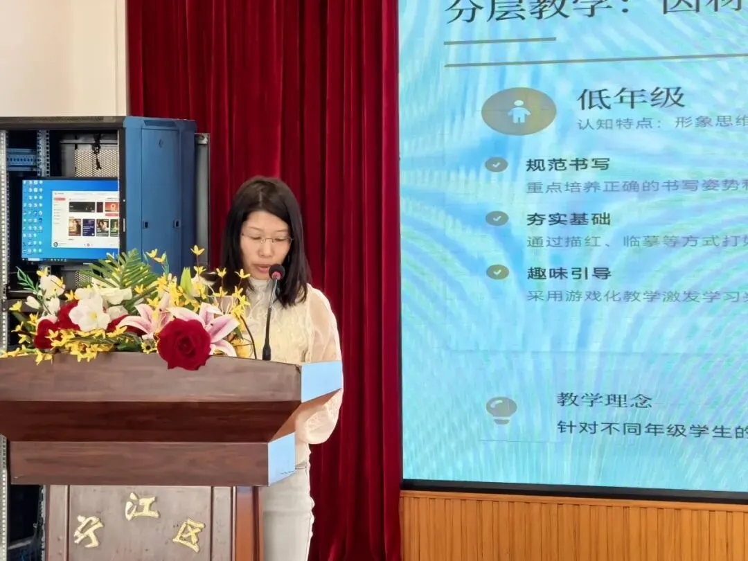 赵欢老师以《熠熠之光照亮教育之路》讲述日常中的微光:一个鼓励的眼神、一次耐心的陪伴。李冰老师分享《以科学之名 守教育初心》,展现科学课堂的温度与智慧。尚宾老师在《拂去阴霾 静待花开》中,讲述陪伴孩子走出困惑的历程。苗春香老师则以《深耕书法教学 践行育人初心》,将传统文化与育人使命融为一体。四位老师的分享没有惊天动地的壮举,却有润物无声的坚守。那些细碎的陪伴,正是教育最本真的模样。