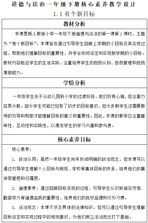 >【新教材】2026春人教版小学一年级道德与法治下册 核心素养教案+课件+计划(全套下载)第1套 可打印