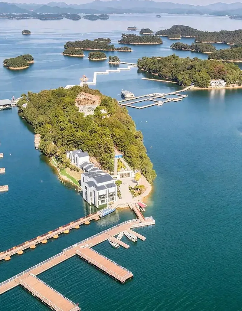 西海之星:高空观景核心。岛上的 99 米西海之星玻璃观光塔是地标,全透明的观景平台可 360° 俯瞰庐山西海数千岛屿的壮阔景观,还有归去来兮看台、护塔龙王等小景,日落时分登塔景色尤佳。