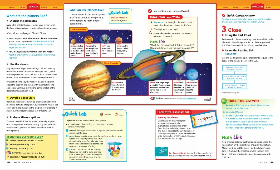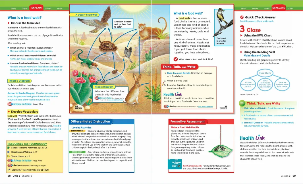 G1会对植物各部分的功能做以简单介绍。个别内容,类似植物的种子,会进行适当拓展。之所以有这部分拓展,是因为GK-G6七个级别整体教学设计的需要;G2开始对植物各部分的功能做更进一步的讲解,比如G1提到的已进行初步拓展的种子,因为种子对于理解植物的生长是具有非常重要的意义的;G3继续对植物各部分的功能意义进行讲解,孩子们会了解根、茎、叶对于植物生长的意义,也会第一次接触细胞的概念;G4关于植物的讲解会向纵深方向发展。会有专门的一章介绍细胞,会探究植物各部分功用的原理;在细胞的基础上,会初步学习植物各部的内部结构,会了解植物的繁殖。;G5开始,加州科学关于植物内部结构的讲解更为深入。根、茎、叶的细胞结构,各部分结构的功用;植物的有性繁殖、无性繁殖,种子植物、被子植物;植物光合作用、呼吸作用的原理,已涉及到简单的化学知识;G6,加州小学六年级,对植物的内部构造极其功能和意义,需要孩子们综合运用多个学科的知识进行理解。不仅仅是植物学,细胞学、遗传学等内容也逐步进入了孩子们的视线通过网盘分享的文件:Z0042 - A Closer Look加州小学教材社会科学GK-G6分级阅读