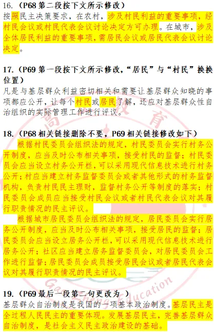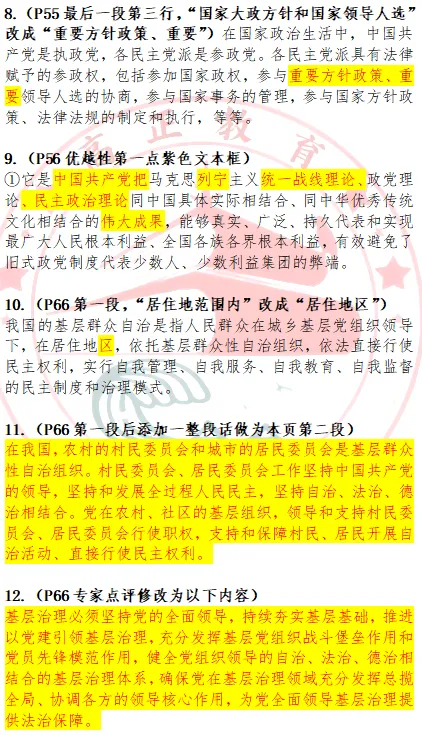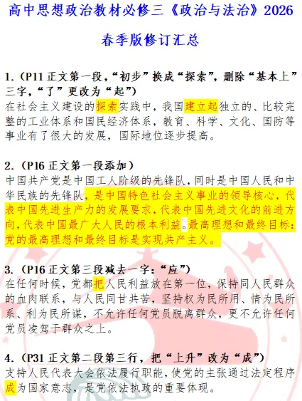 高中思想政治教材必修三《政治与法治》2026春季版28处修改汇总,转给需要的人!