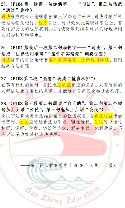 >高中思想政治教材必修三《政治与法治》2026春季版28处修改汇总,转给需要的人!