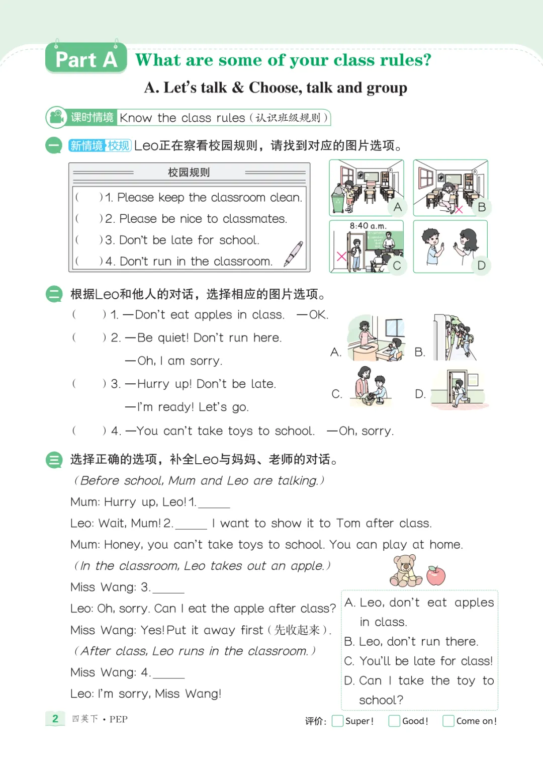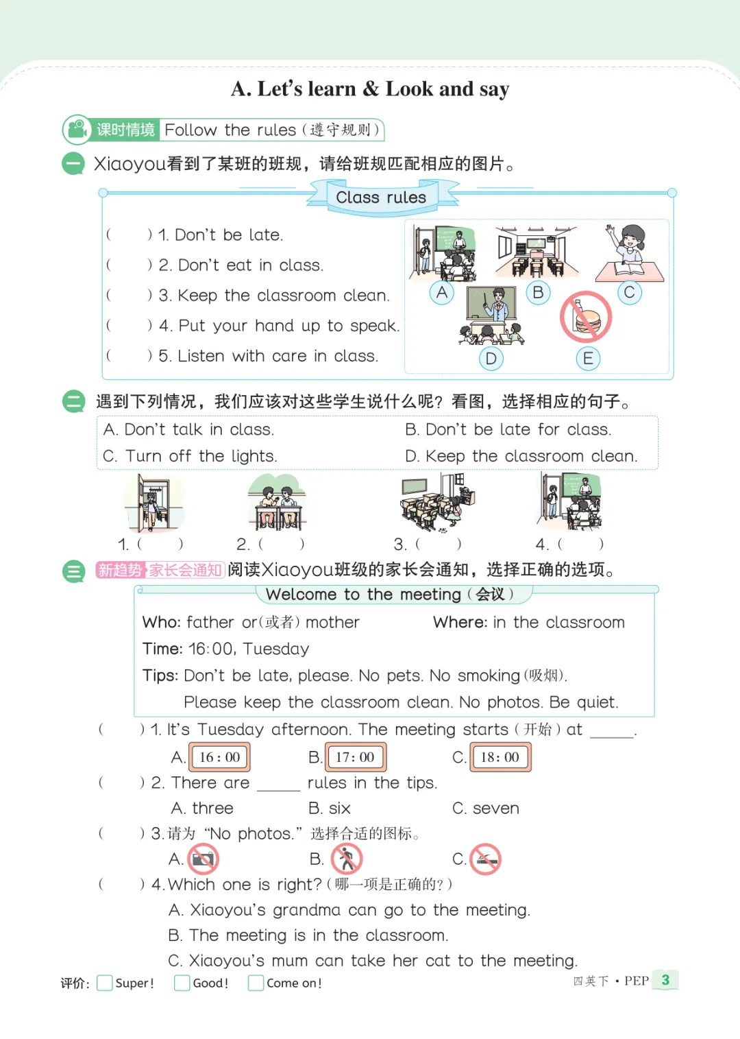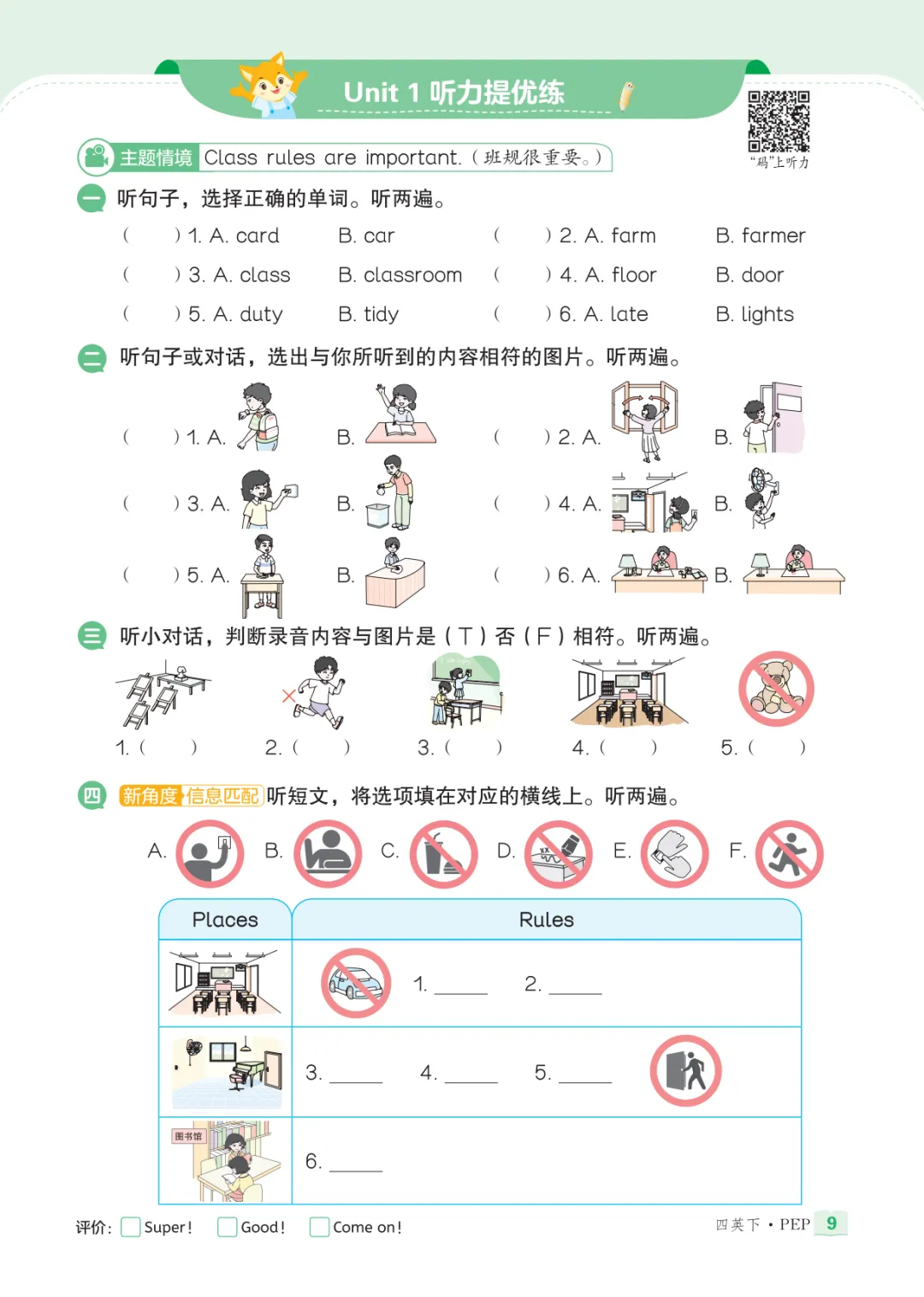 当前位置:首页>小学教材>PEP人教版新教材小学英语四下U1课时同步练